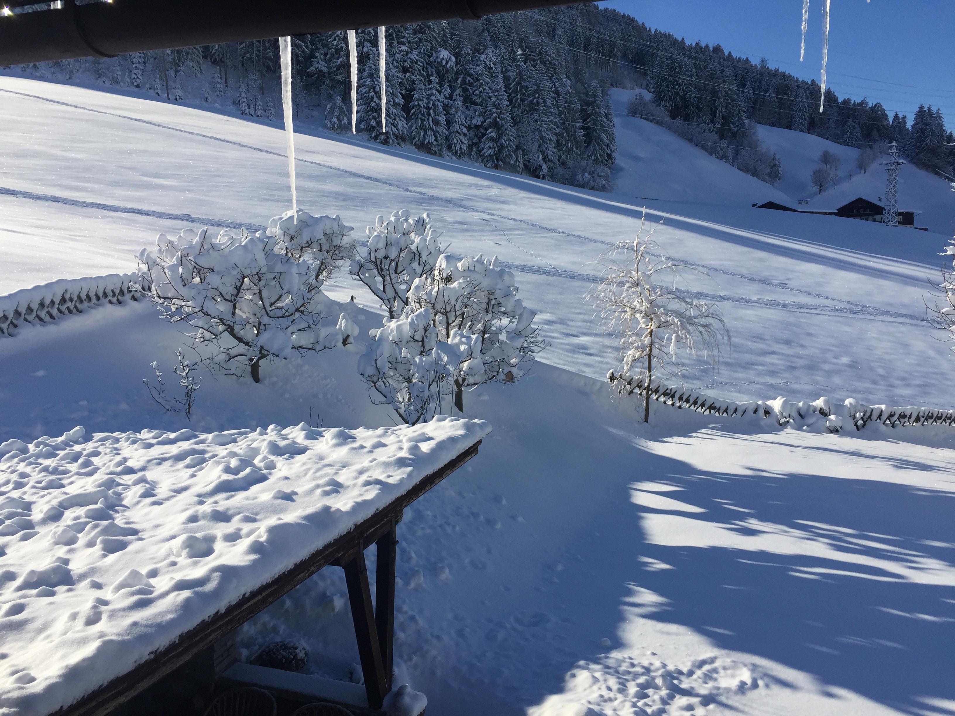 Die gemütliche Ferienwohnung enthält eine voll ausgestattete Wohnküche inkl. Fernseher und Balkon, ein Doppelzimmer mit Fernseher und Balkon, ein Dreibettzimmer sowie ein Badezimmer mit Dusche und WC. Fahrräder können in der Garage abgestellt werden, für Ski gibt es einen eigenen Skiraum.