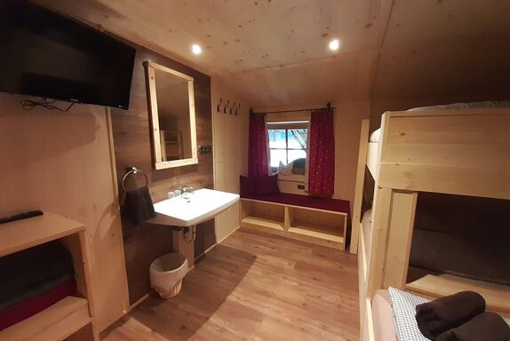 Die gemütlichen Zimmer sind mit Waschbecken und LED-TV ausgestattet. Dusche und WC befindet sich auf dem Gang.