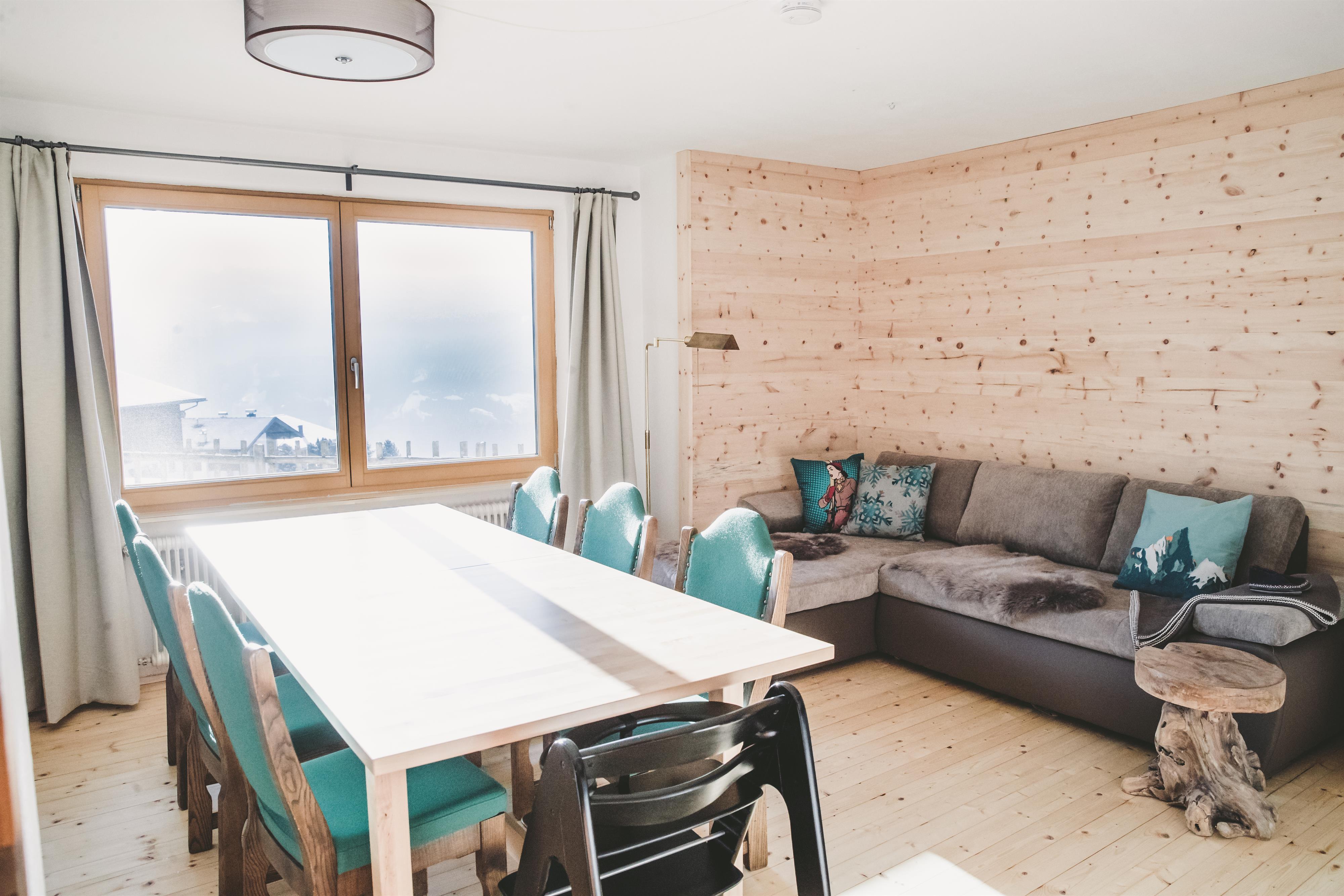 Appartement mit großzügigem Balkon mit Talblick übern Pool. Direkter Blick auf die Piste und Kindergelände und Lifteinstieg. Geeignet für Familien mit bis zu 4 Kindern.