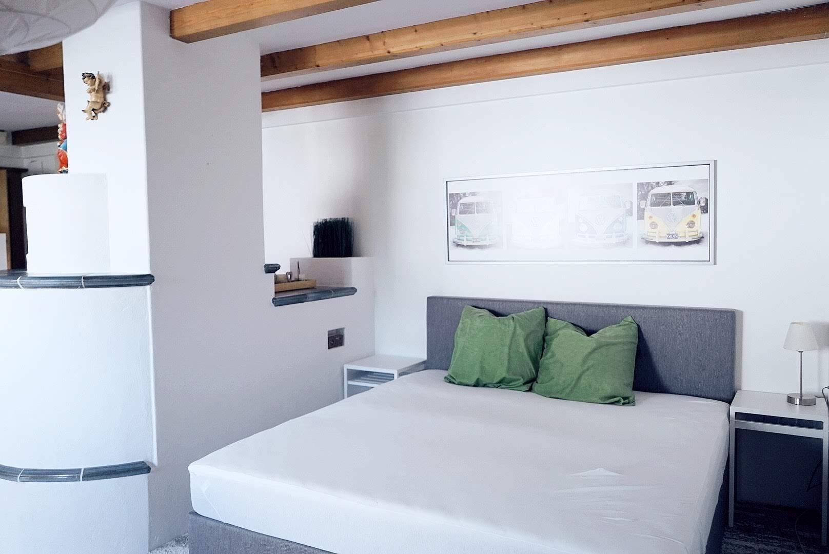 Gesamte Wohnung im 1. Stock mit 1 Doppelbett u 1 Schlafsofa ausserdem Badezimmer u große Wohnküche! Ein Balkon mit Möbeln u herrlichem Blick zum Schloß Frundsberg!