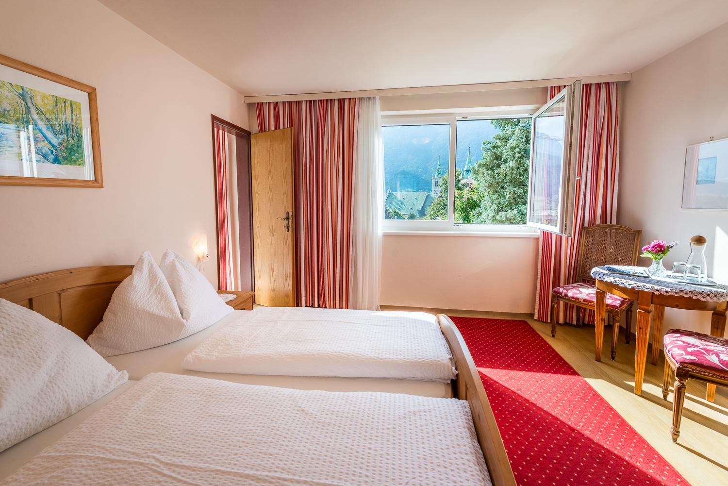 Auf der Sonnenseite von Schwaz gelegen, eröffnet sich Ihnen von der ganzjährig geöffneten Pension aus ein wunderbarer Blick auf das Zentrum von Schwaz und das Unterinntal.Die sonnigen und ruhigen Zimmer verfügen über zeitgemäßen Wohnkomfort und ein gemütliches Ambiente. Gäste erwartet außerdem ein Aufenthaltsraum und morgens ein reichhaltiges Frühstücksbuffet. Einen besonders schönen Ausblick auf das imposante Karwendelgebirge können Sie im lauschigen Garten mit Liegewiese genießen.