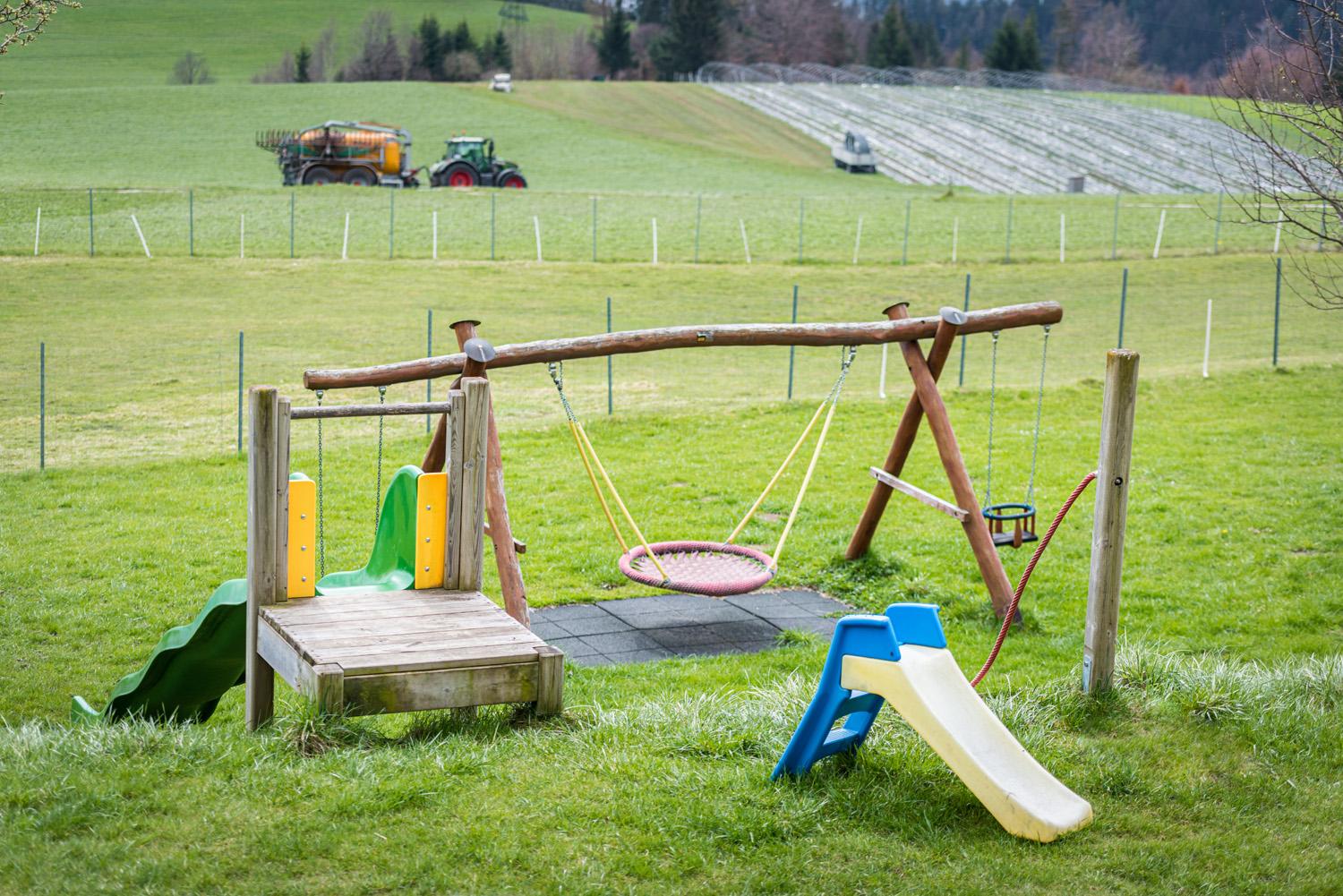 • Kinderspielplatz mit diversen Spielgeräten und Spielhaus