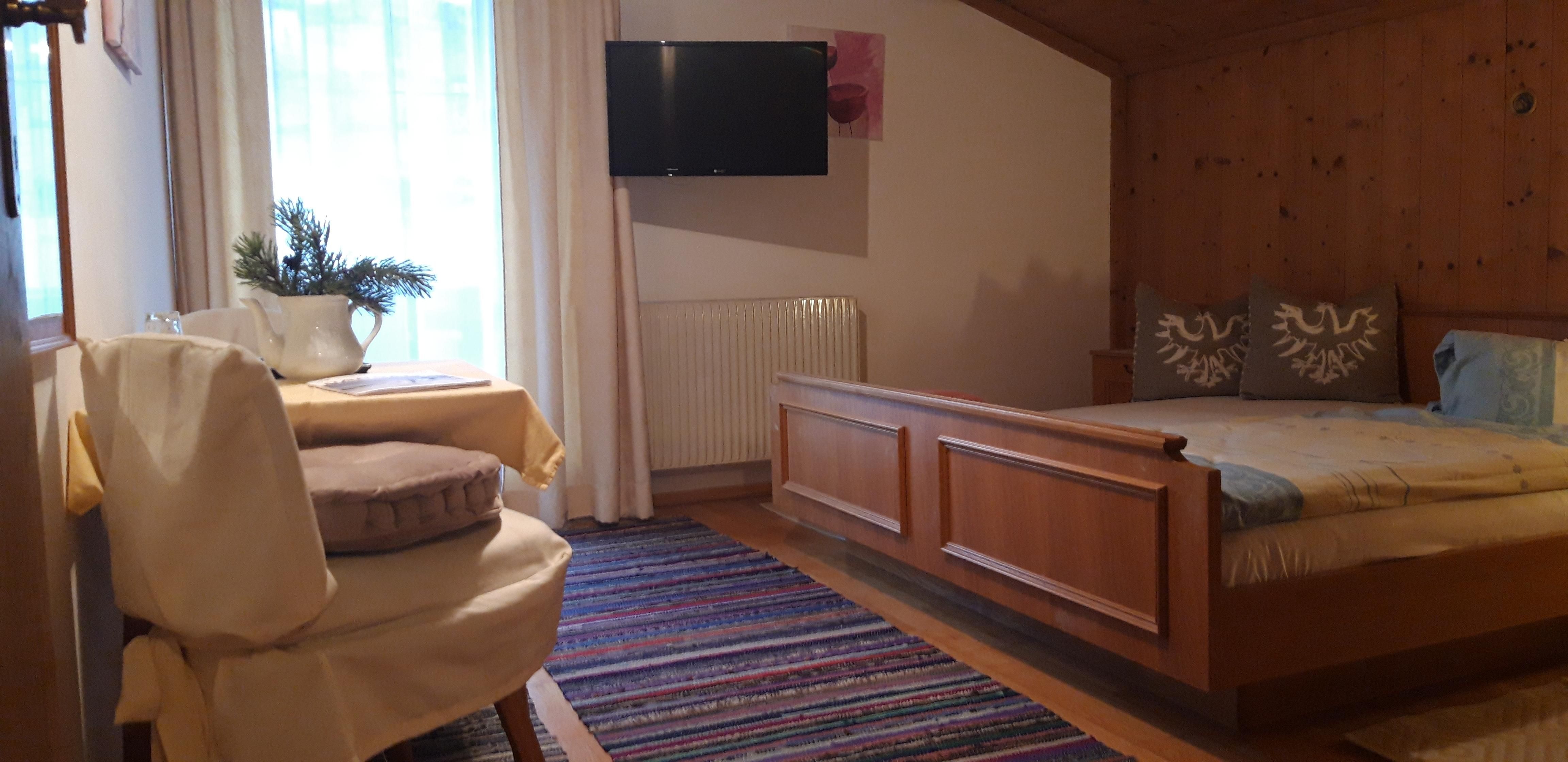 Unseren Gästen steht eine voll aus gestattete Ferienwohnung, zwei Komfortdoppelbettzimmer sowie ein Einbettzimmer mit Dusche und WC zur Verfügung. In jedem Zimmer befindet sich eine heimelige Sitzecke. Wasserkocher und Kühlschrank sind in jedem Zimmer vorhanden. Damit Sie das herrliche Bergpanorama in vollen Zügen genießen können, befindet sich bei jedem Zimmer ein gemütlicher Balkon mit Sitzmöglichkeiten. In jedem Zimmer befindet sich TV mit integriertem Radio. In jeder Jahreszeit lädt die Liegewiese zum Verweilen ein. Bauen Sie einen Schneemann im Winter, etspannen Sie im Sommer! Der Wald als Naherholungsgebiet ist in 6 Gehminuten entfernt, da befindet sich ein Spielplatz und eine Forstmeile.