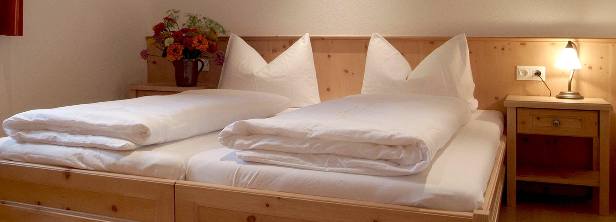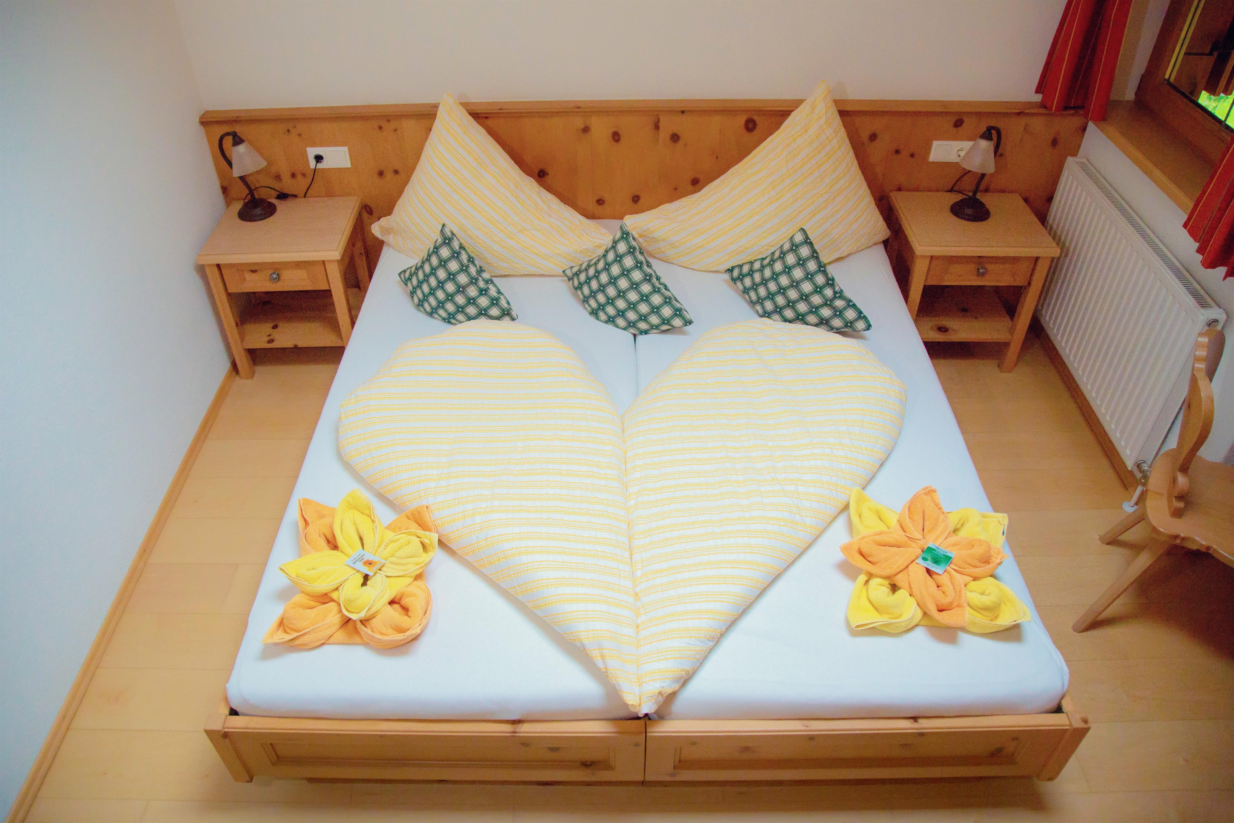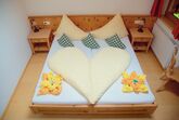Sehr schöne Doppelbettzimmer mit Zirbenholzmöbeln, Dusche und WC.