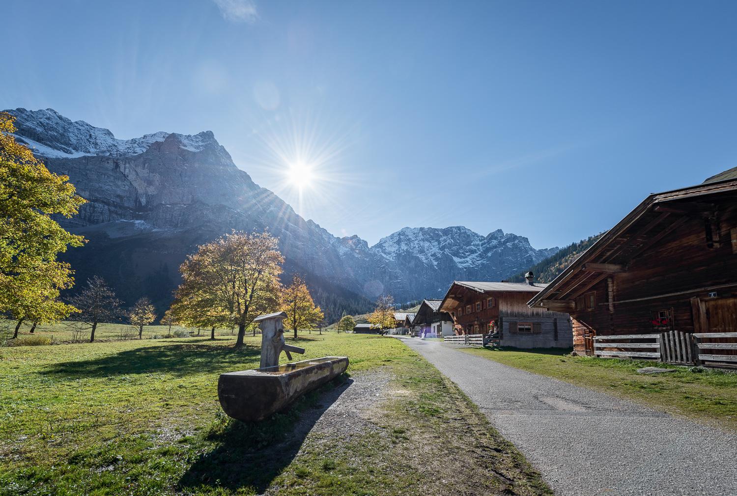 Das Almdorf auf 1.250 m Seehöhe: Die Engalm in einem der schönsten Gebiete der Alpen, direkt am Großen Ahornboden. Ausflugsziel für die ganze Familie und Ausgangspunkt unzähliger Wanderrouten. Hier können Sie losstarten, die Umgebung genießen und typisch tirolerisch schlemmen in der Eng Alm Rasthütte. Haustiere/Hunde sind bei Übernachtungen nicht gestattet.
