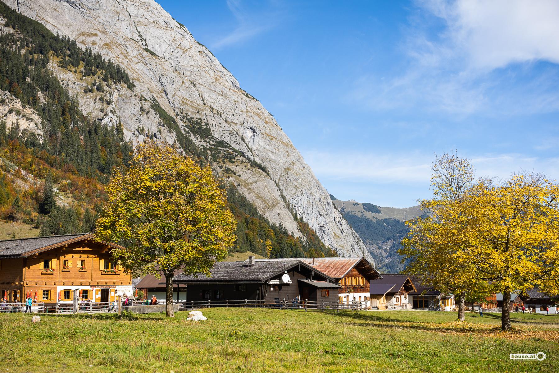 Das Almdorf auf 1.250 m Seehöhe: Die Engalm in einem der schönsten Gebiete der Alpen, direkt am Großen Ahornboden. Ausflugsziel für die ganze Familie und Ausgangspunkt unzähliger Wanderrouten. Hier können Sie losstarten, die Umgebung genießen und typisch tirolerisch schlemmen in der Eng Alm Rasthütte. Haustiere/Hunde sind bei Übernachtungen nicht gestattet.
