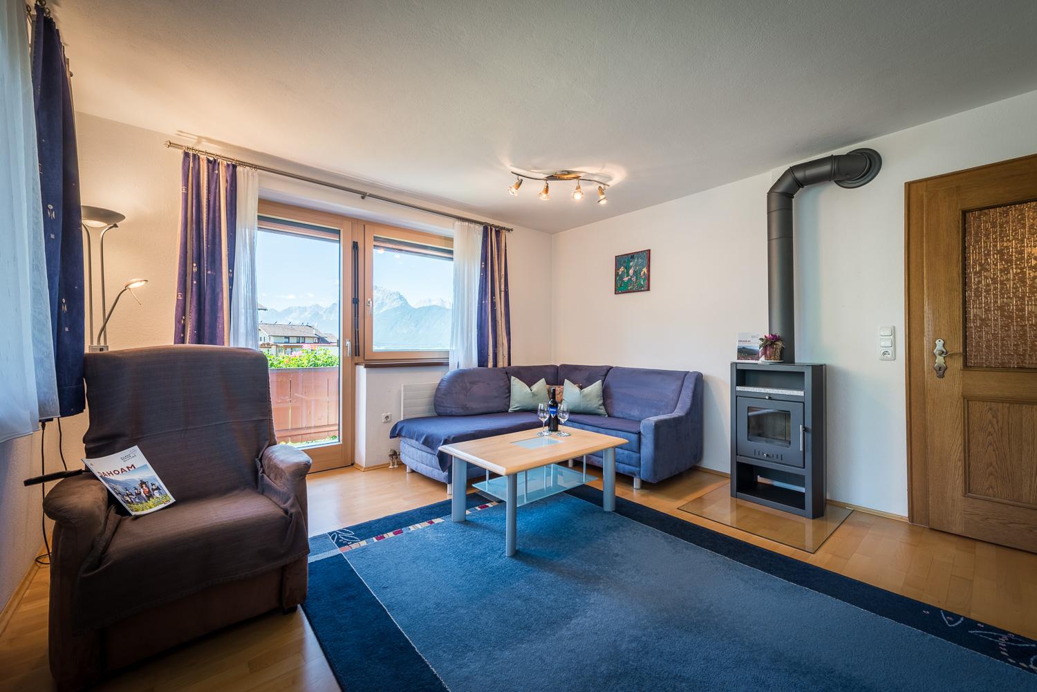 Herrlicher Blick auf das Karwendelgebirge. Ausgangspunkt schöner Wanderungen und Sehenswürdigkeiten. Skischule, Skiverleih, Skilifte und Rodelbahn sind in unmittelbarer Nähe.