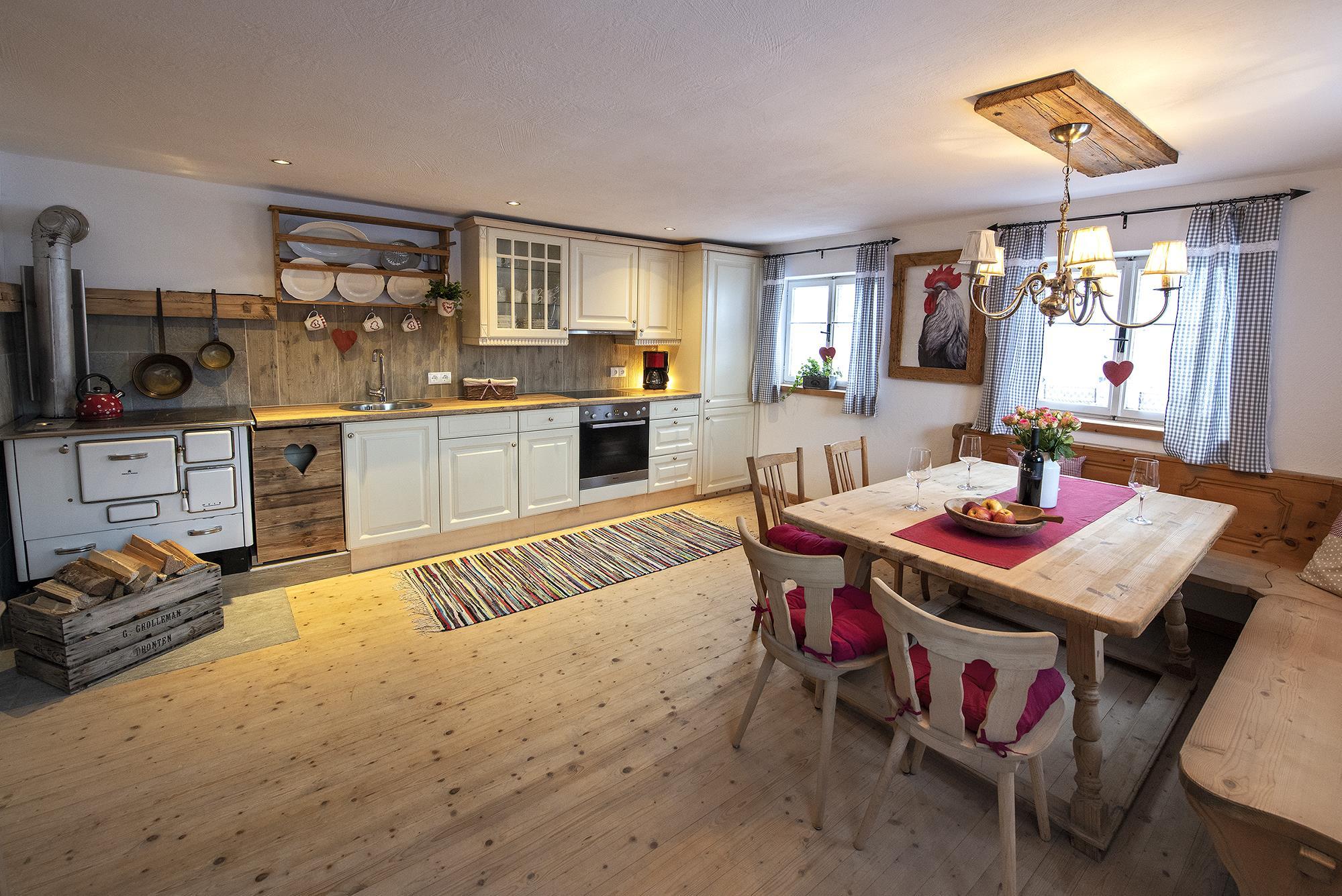 Das Haus ist ausgestattet mit einer großen gemütlichen Wohnküche. Hier findet ihr auch einen Holzküchenherd aus Omas Zeiten, wo ihr euch in einem alten Eisenpfandl leckere Speisen zubereiten könnt. Aber natürlich gibt es auch noch einen Elektroherd. Im geräumigen Wohnzimmer findet ihr eine große Couch, einen Schwedenofen und einen Flat-TV. Das frisch renovierte Badezimmer verfügt über eine Badewanne, eine große Dusche und ein WC. Im Obergeschoß befinden sich drei geräumige Doppelzimmer und ein Einzelzimmer, sowie eine separate Toilette. Beheizt werden die Schlafzimmer mit Infrarotheizkörpern.