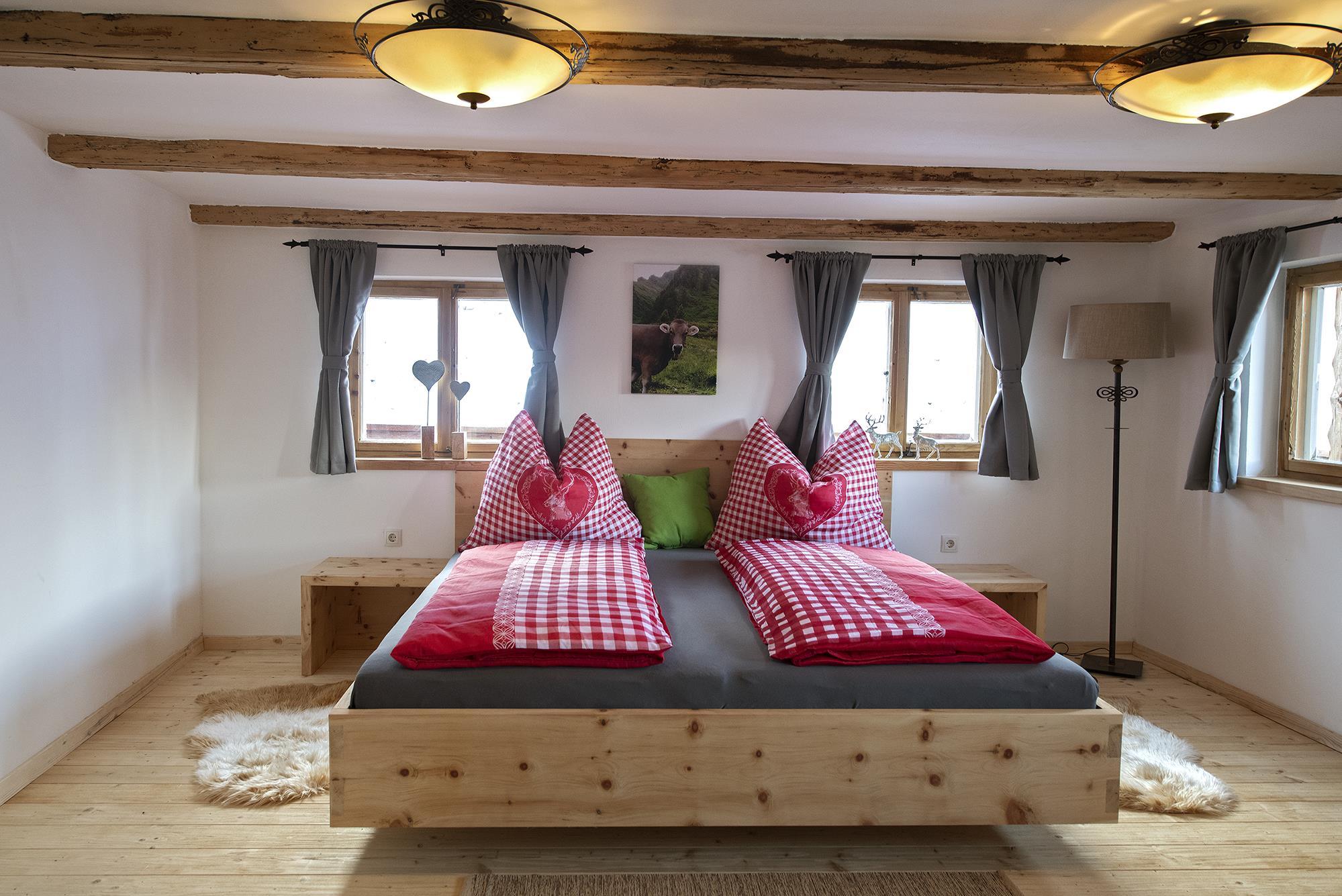 Das Bauernhaus ist ausgestattet mit: großer Wohnküche mit Holzküchenofen, großem Wohnzimmer mit Schwedenofen und Flat-TV, Badezimmer mit Wanne, Dusche und Toilette, Flur mit Schwedenofen, zwei separaten Toiletten, drei Schlafzimmern mit Doppelbett, ein Einzelzimmer, rundum laufender Balkon, goßem Garten mit Sitzgelengenheit, ausreichend Parkplätzen vor dem Haus