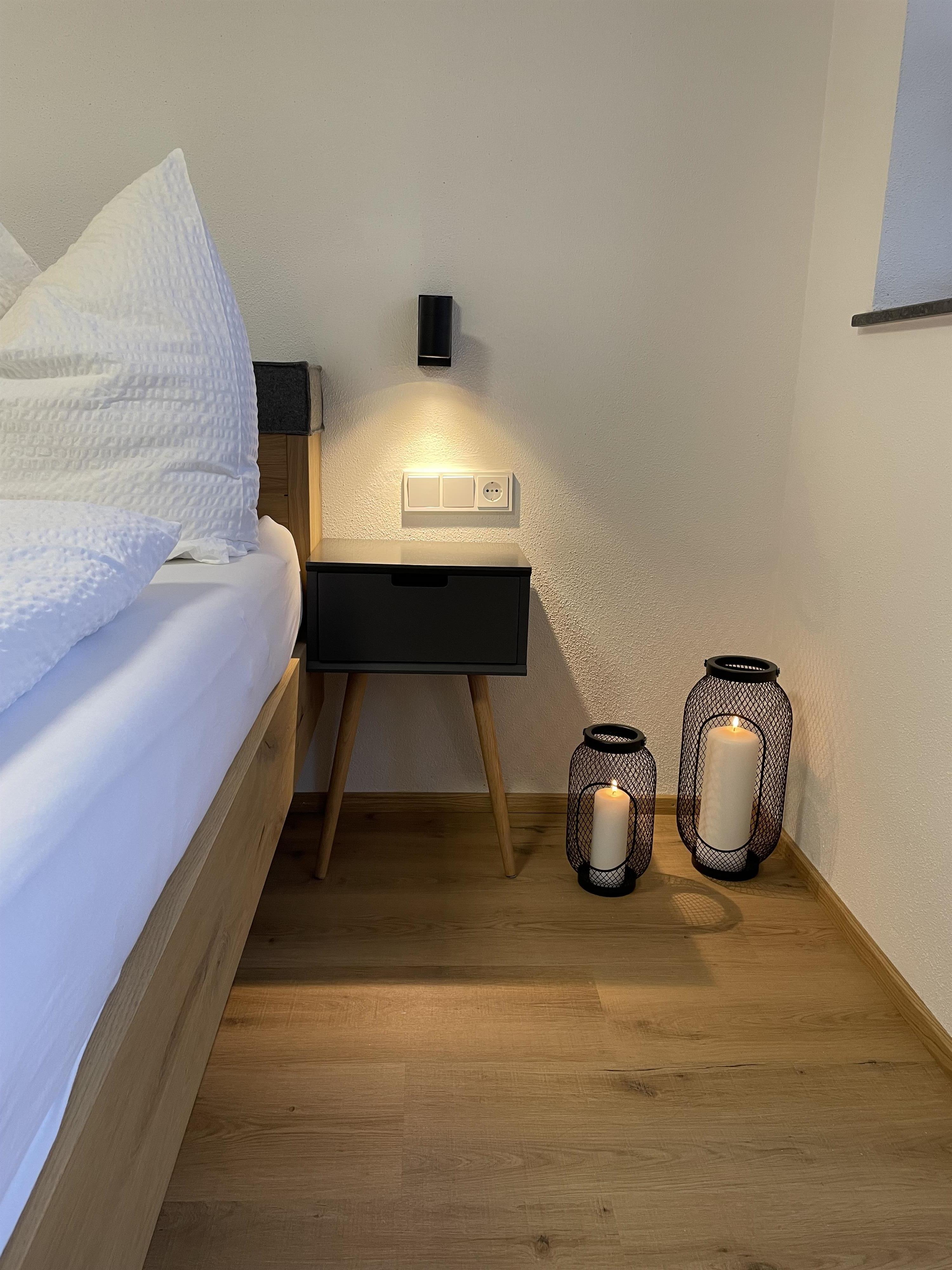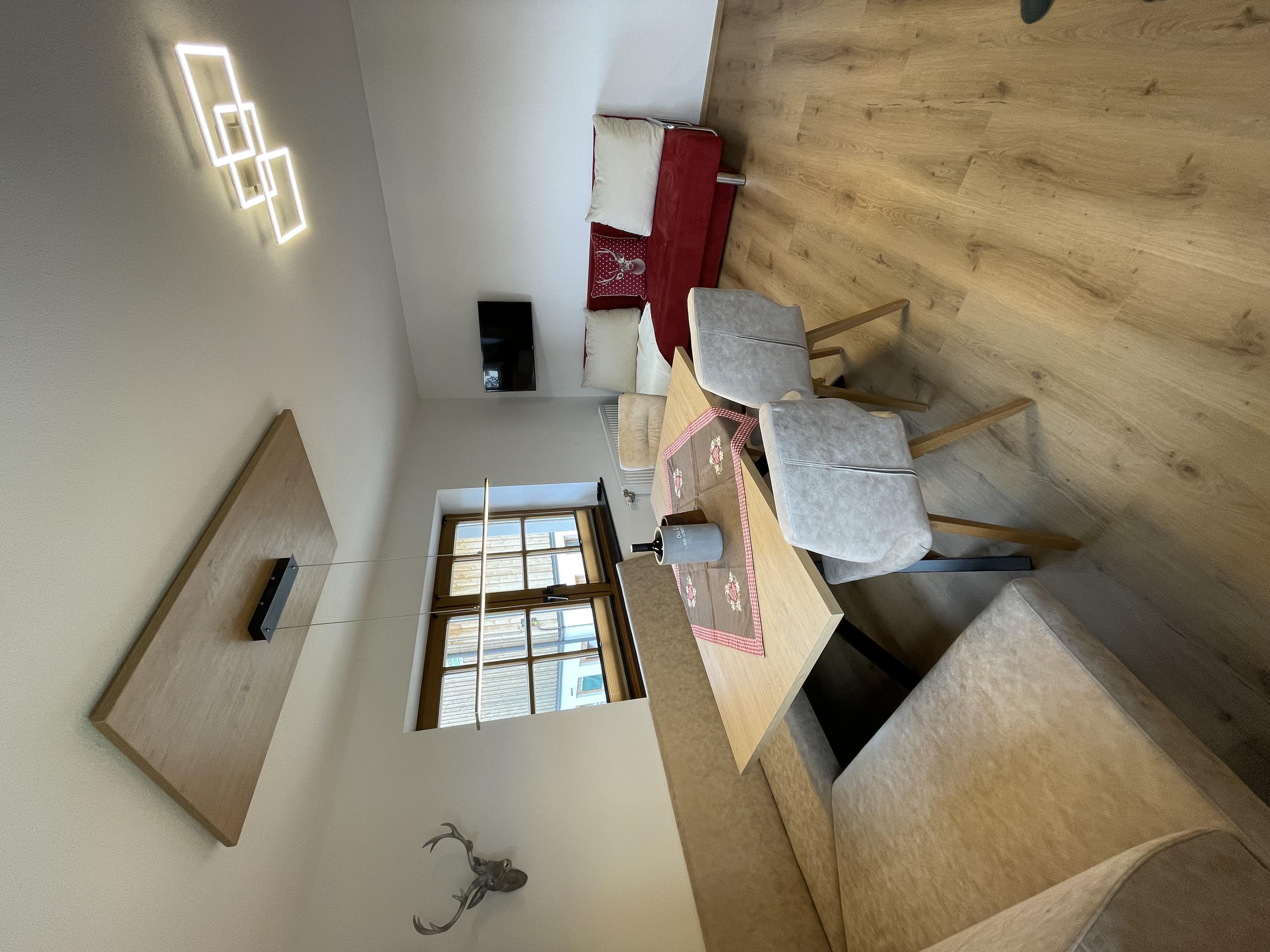 Unsere neu erbaute Ferienwohnung Almluft verfügt über eine gemütliche Wohnküche mit vollausgestateter Küche. Sowie über zwei liebevoll eingerichtete Schlafzimmer mit Boxspringbett und ein großzügiges Badezimmer.