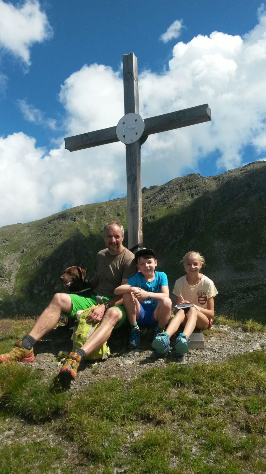 Urlaubsglück mit Blick auf unseren Hausberg - unsere Ferienwohnung Ebner Joch