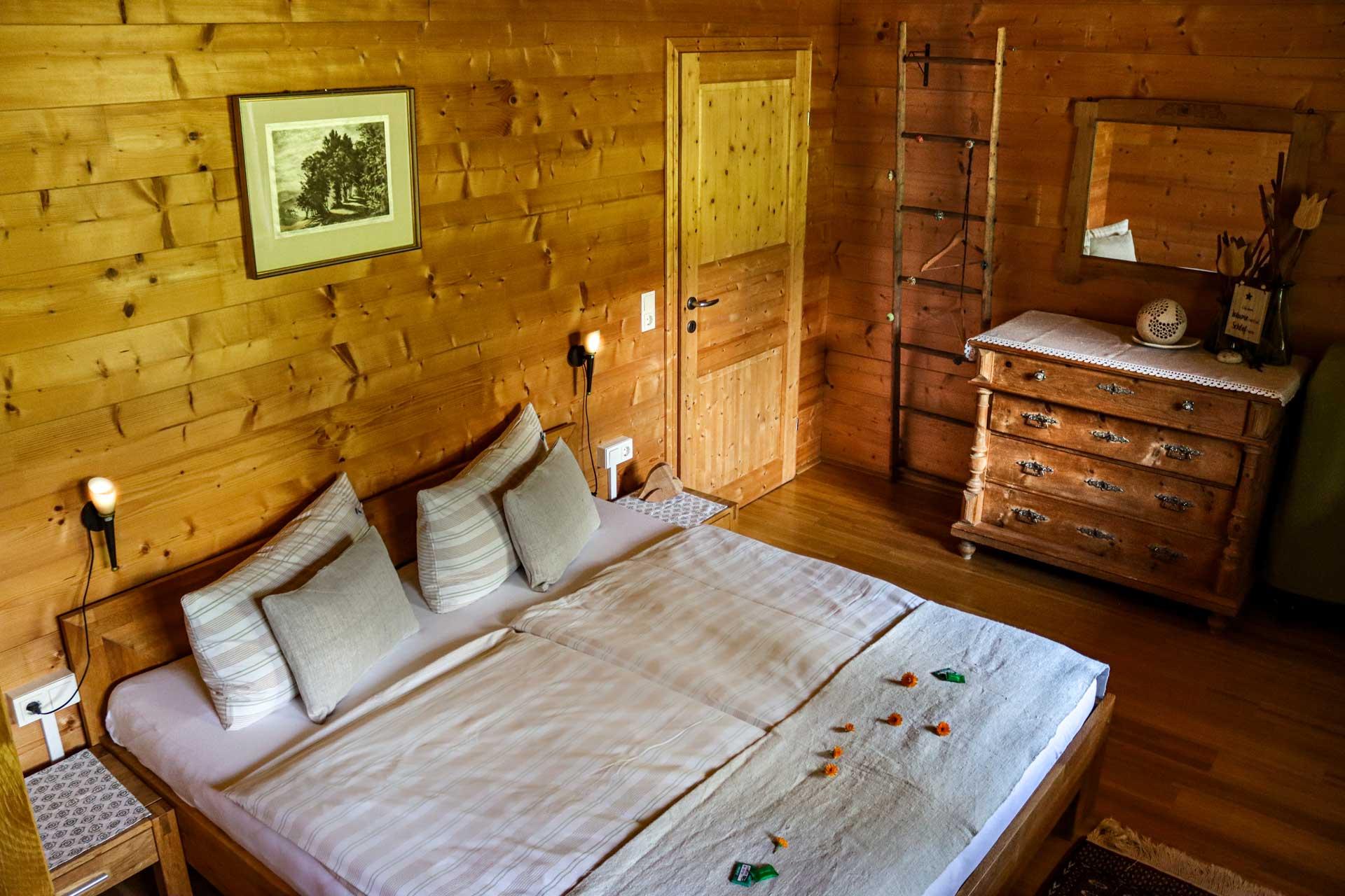 Unsere Zimmer sind mit Parkettböden und Vollholzmöbeln ausgestattet. Ein Zimmer, mit wunderbarem Ausblick auf einen Obstgarten, ist mit Eichenmöbeln eingerichtet. Im anderen Zimmer steht ein ca. 100 Jahre altes Zirbenzimmer. Die Zirbe ist bekannt dafür, dass sie für ein gesundes und angenehmes Raumklima sorgt.