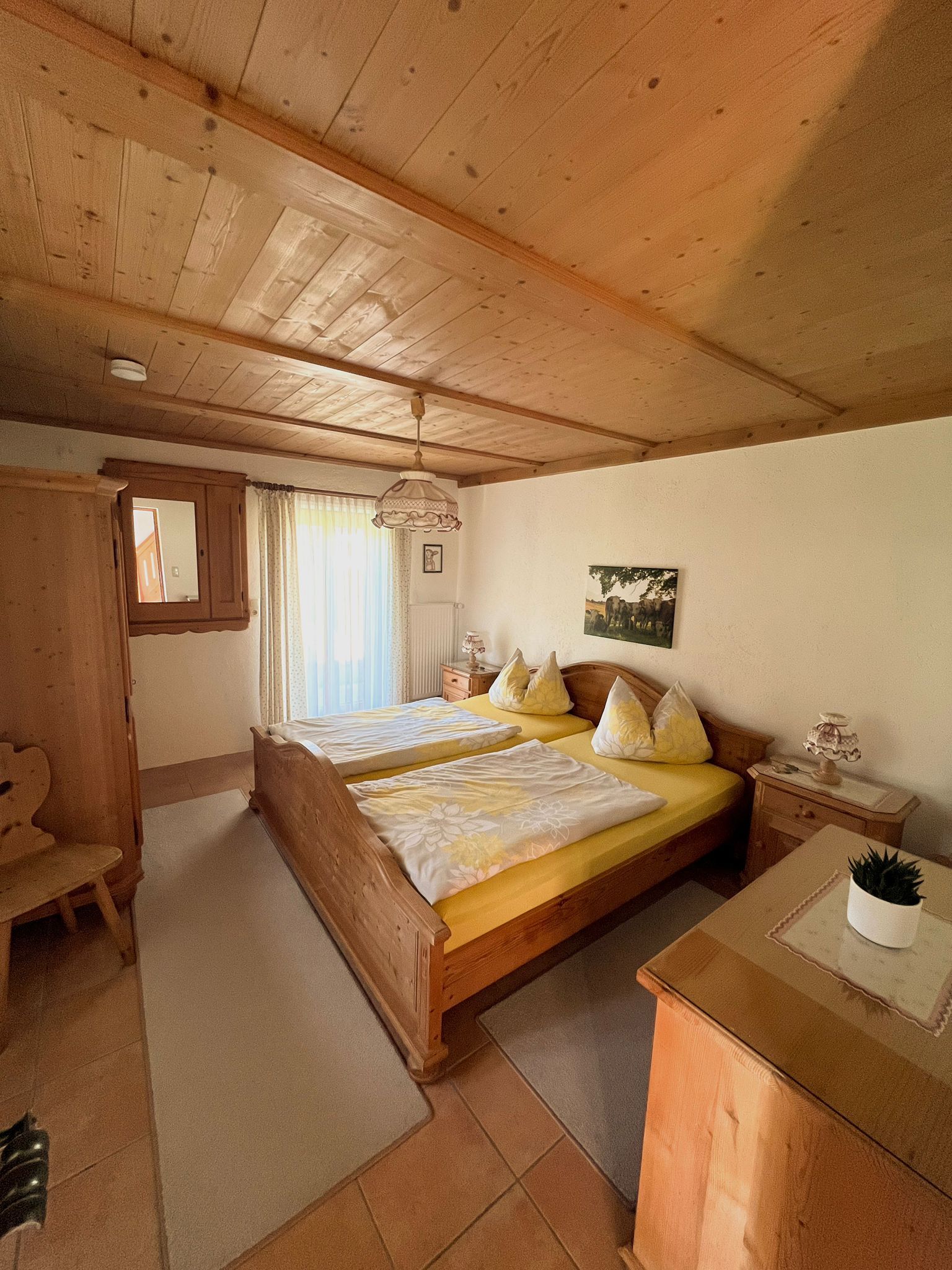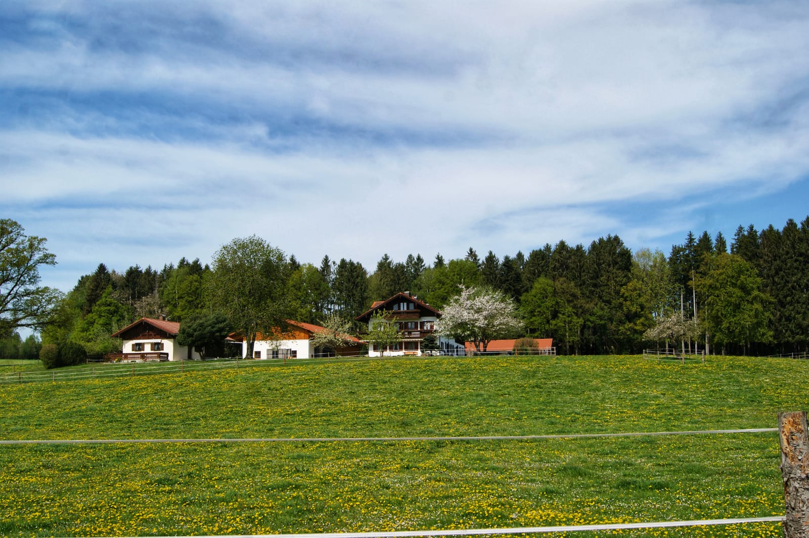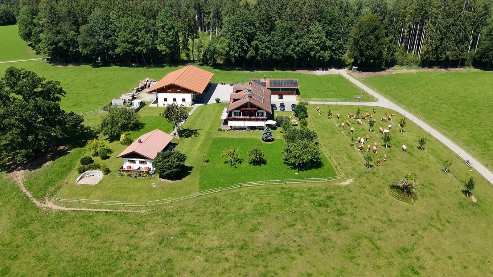 Ferienhäuschen in sehr ruhiger Lage, wie auf einer Alm, Große Terasse, Liegewiese, Grillplatz mit Blick zu den Bergen, Weidetiere um das Ferienhäuschen, in der nähe vom Wald, Rad- und Wanderwege, zu Fuß 10 Min. zum See.