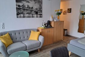 Nutzen Sie die Couch doch gern zum entspannen vor dem großen Flachbild TV. Selbstverständlich haben Sie in diesem Appartement auch Ihr eigenes Internet mit WLAN Zugang.