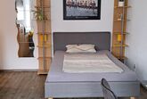 Ebenfalls in diesem Raum integriert ist eine Couch zum Chillen und ein Bett mit einer Liegefläche von 140 x 200 cm. Trotzdem haben Sie genug Platz sich frei zu bewegen.