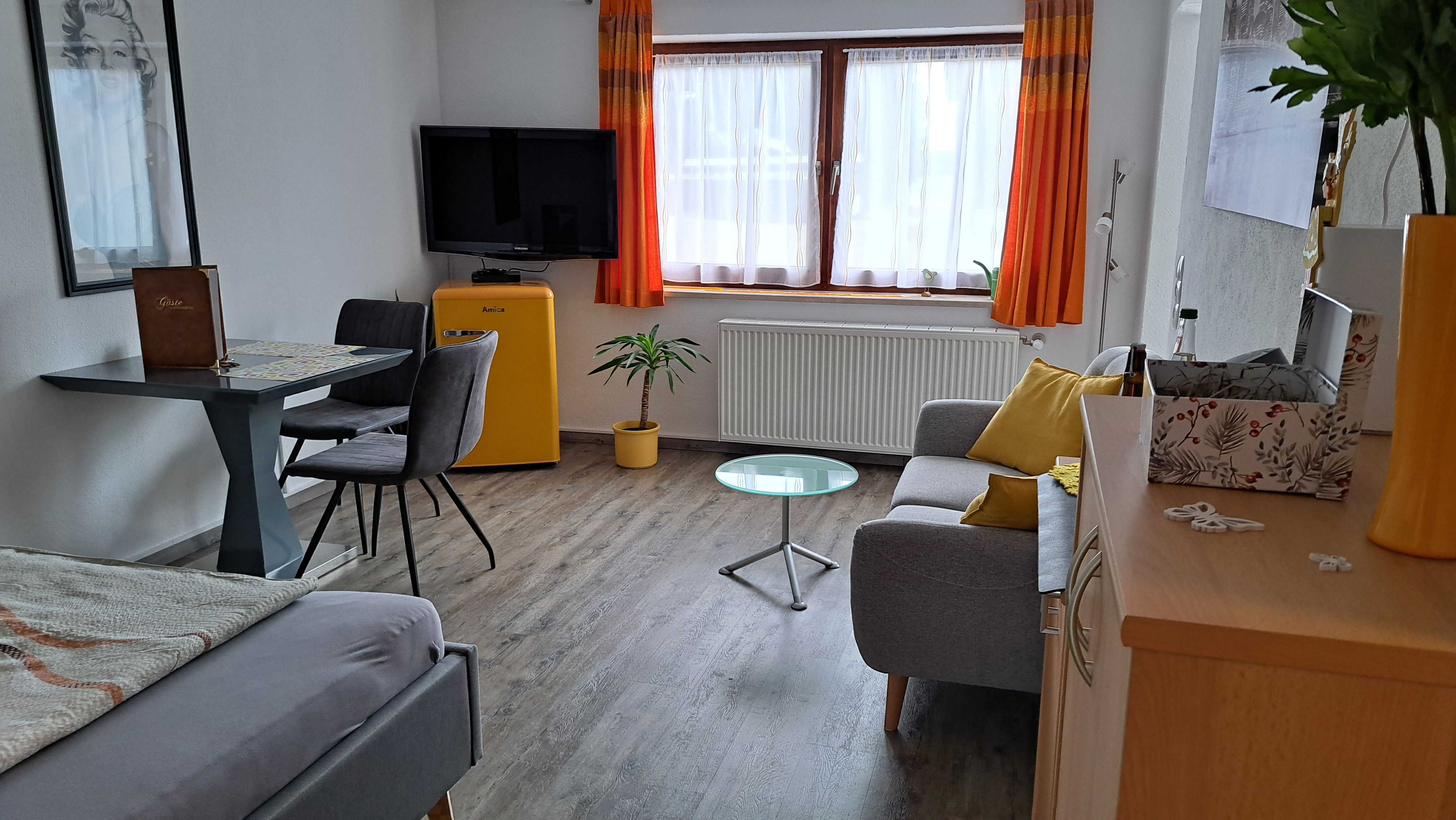 Sie reisen allein oder mit maximal einer Begleitperson an? Dann ist unser 34 qm großes Ein-Zimmer-Apartment Fuchsbau genau das Richtige für Sie.