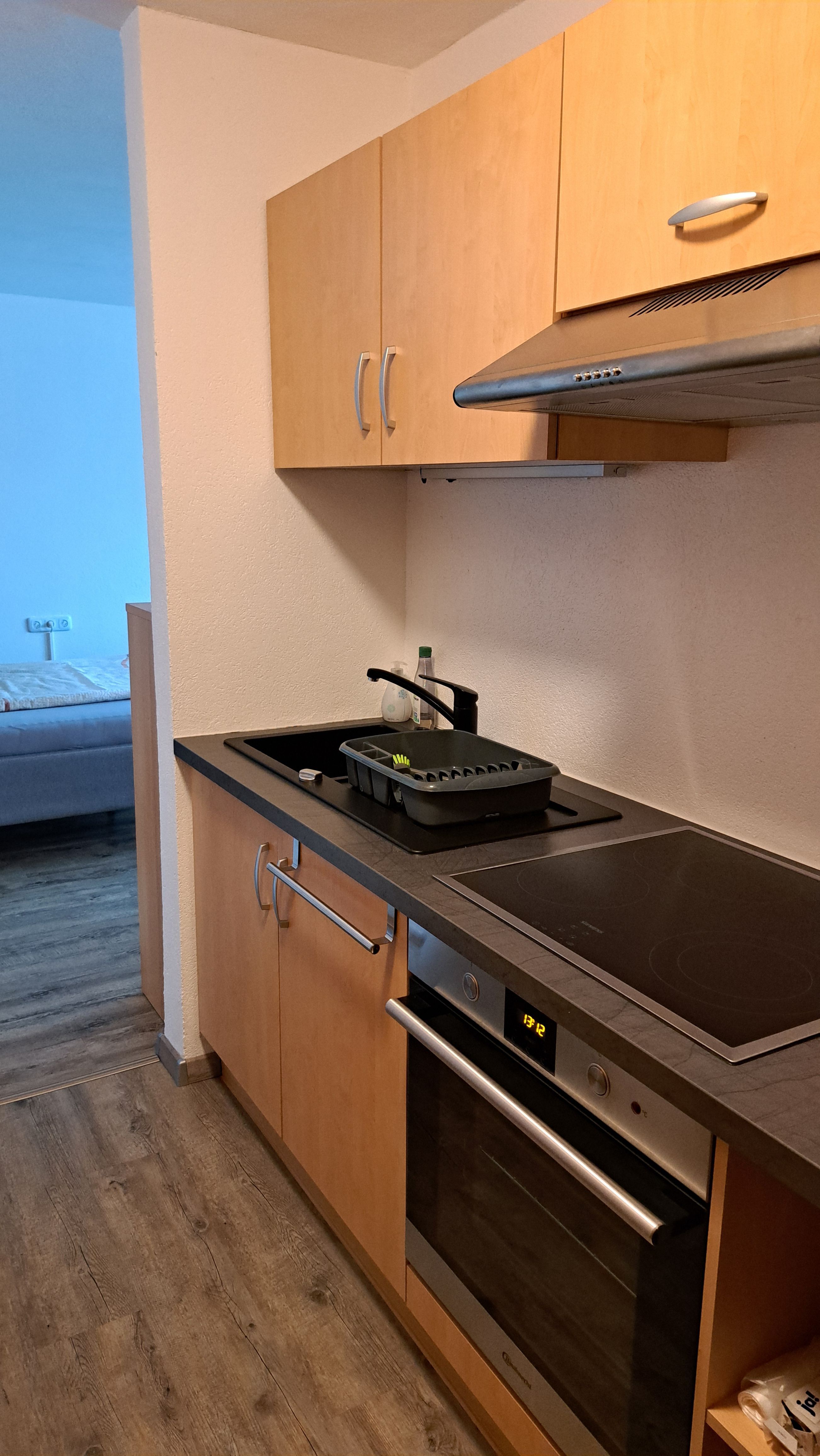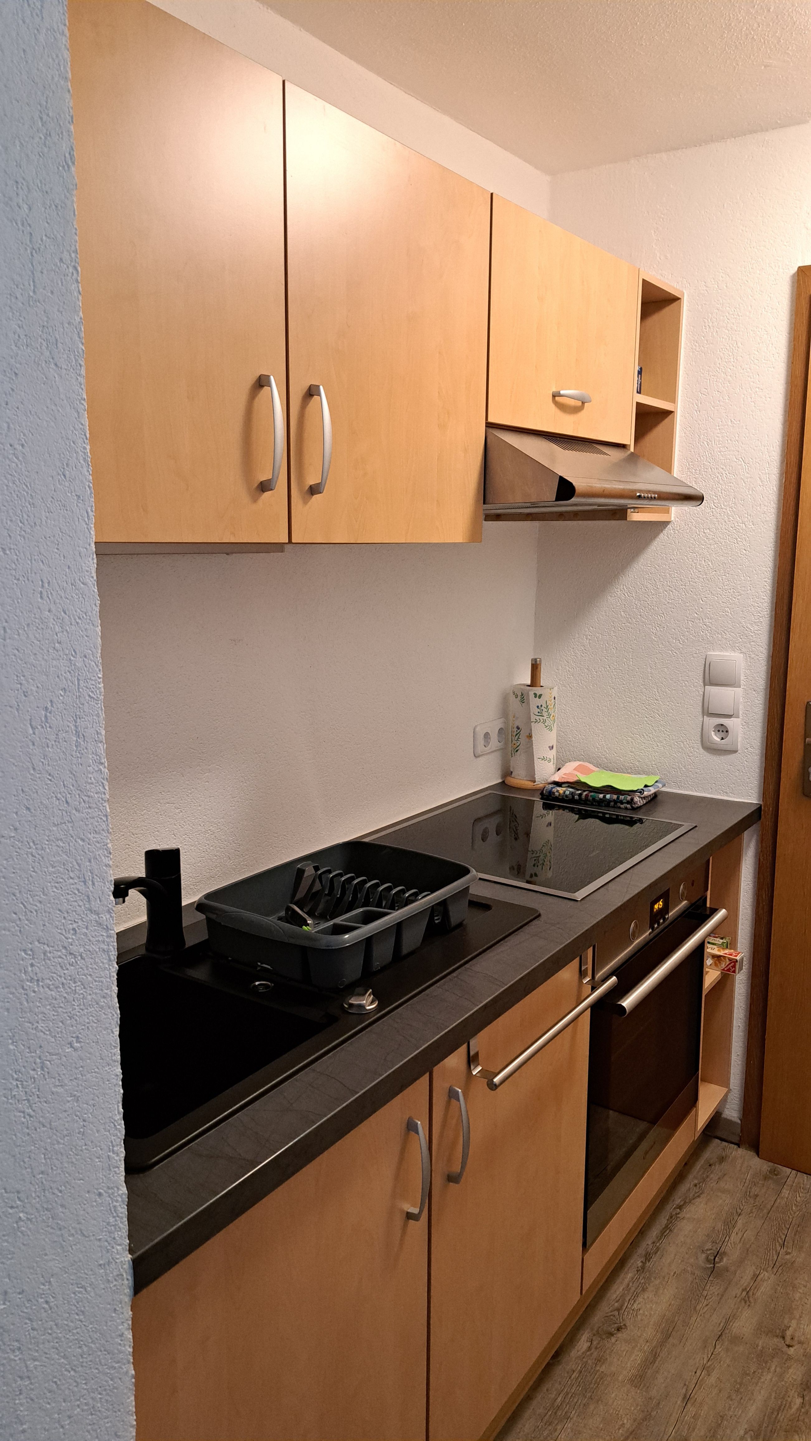 In der vorhandenen Einbauküche (Ceranfeld mit 4 Kochfeldern, Backofen, Spüle, Kühlschrank) können Sie sich nach Herzenslust etwas kochen. Eine Grundausstattung an Gewürzen, Ewig, Öl, Kaffee, Tee ….. ist schon vorhanden.