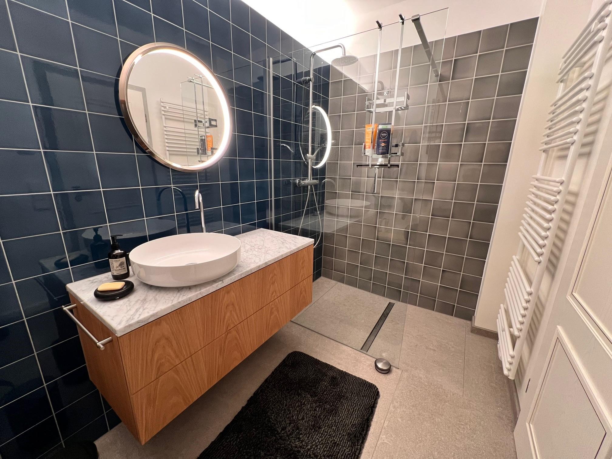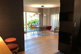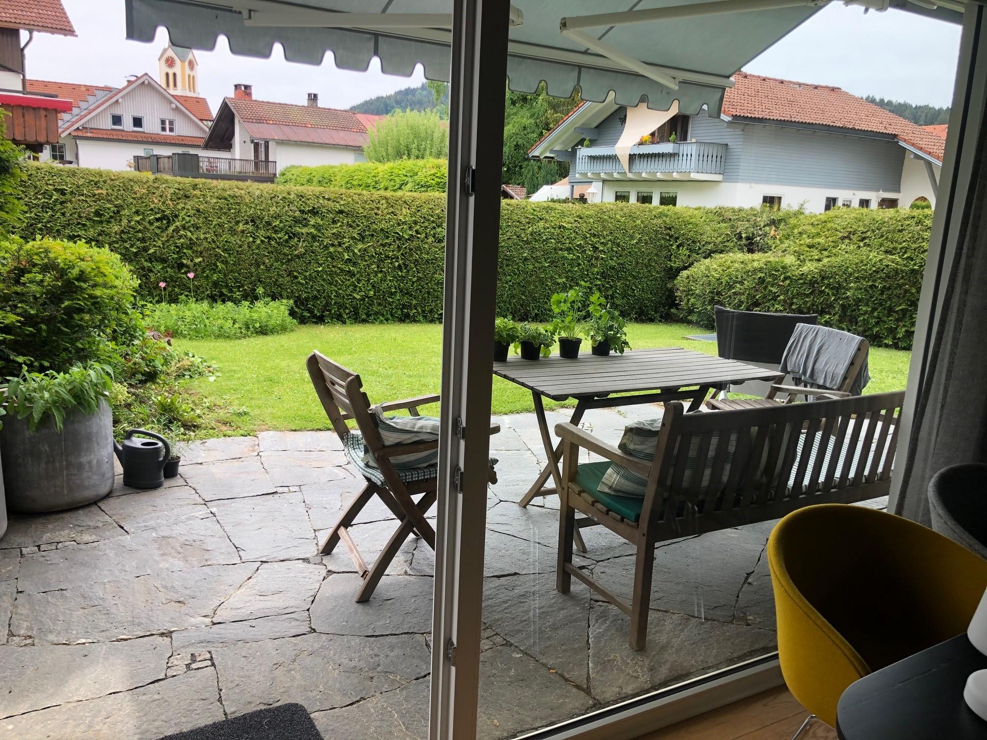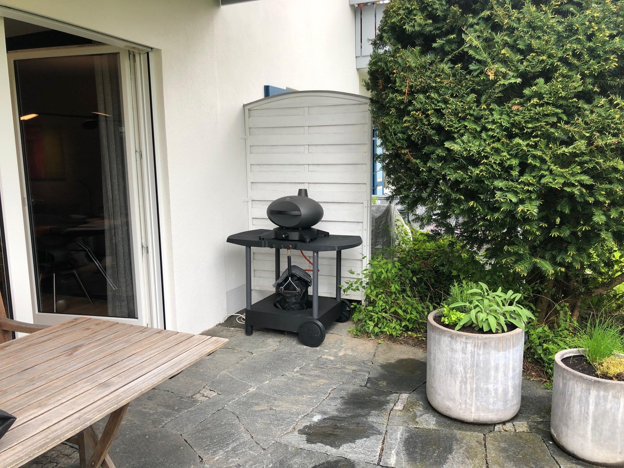 Bei der Wohnung handelt es sich um eine herrliche nach Süden ausgerichtete lichtdurchflutete EG Wohnung mit Terrasse und Garten in ruhiger Lage, vollwertig ausgestattete Küche mit Spülmaschine, Herd, Backofen, Kühlschrank mit Gefrierfach, Espressomaschine, Gewürze und Öle,