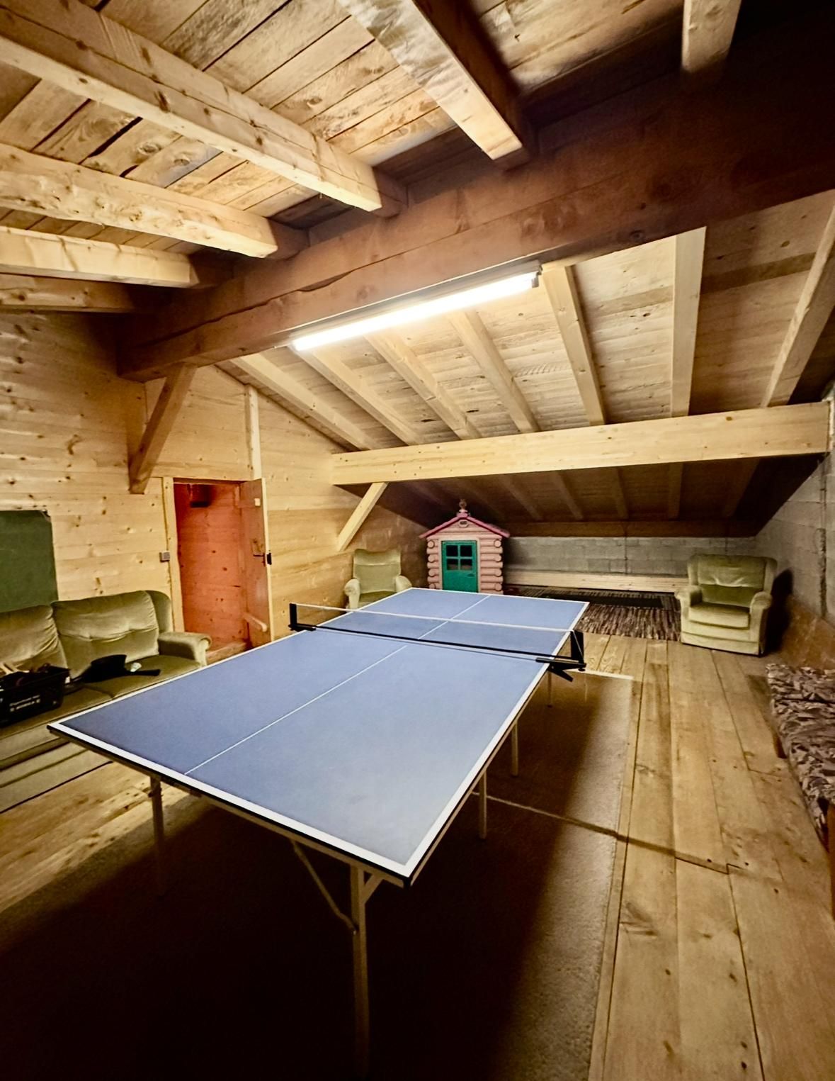 Sie verfügt über eine gut ausgestattete große Küche mit Holz. – und Elektroherd, Kühl. – Gefrierkombination, Kaffeemaschine, Backofen und Radio, zudem eine Wohnstube mit Kachelofen. . Es gibt 4 Zimmer, 1 großen Duschraum und 1 WC.