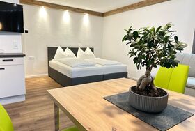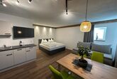 Appartement (35 m²) 1 bis zu 4 Personen, voll ausgestatte Küche ink. Kaffeemaschiene, Doppelbett (Einzelbetten möglich), Essecke, Bad mit Dusche und WC, Digital-SAT-TV, gratis W-Lan, große Terrasse südseitig mit Stadt und Dolomitenblick, Parkplatz