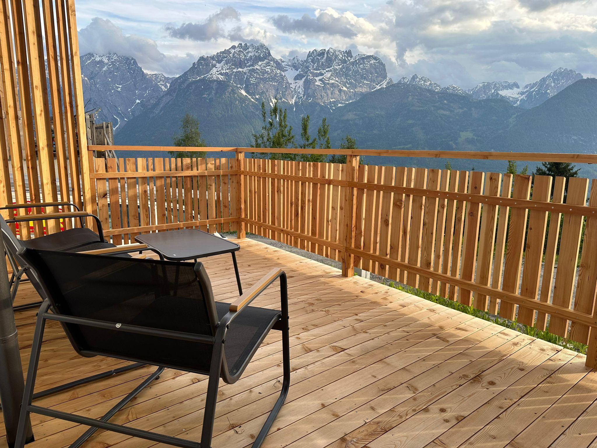 In idyllischer Lage hoch über dem Talboden von Lienz, auf knapp über 1.000 m Seehöhe, bietet die brandneue „Dolomitenblick Suite einen atemberaubenden Panoramablick auf die Lienzer Dolomiten.