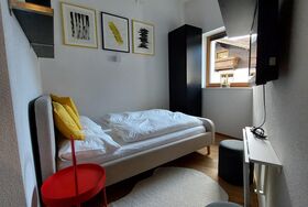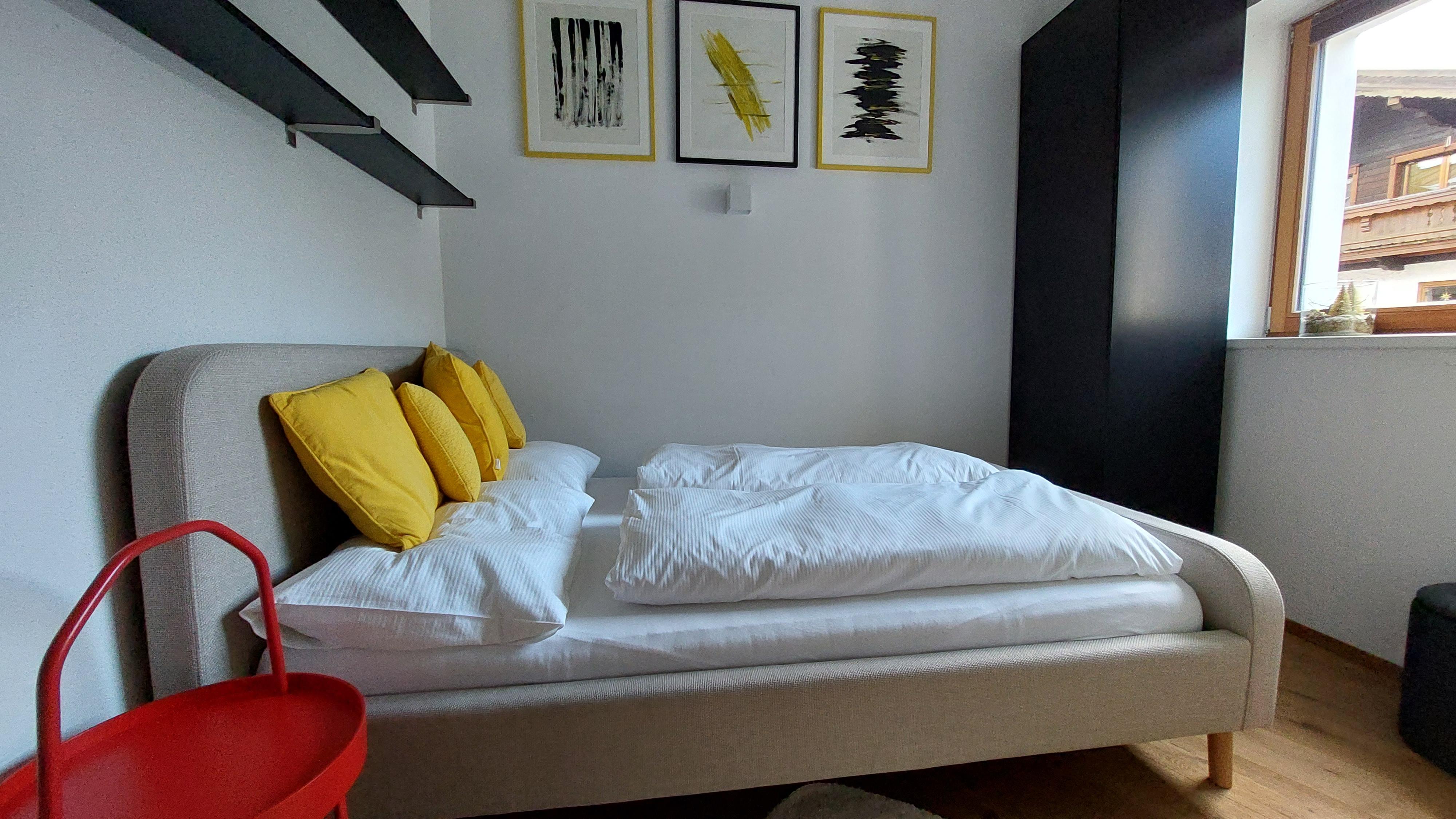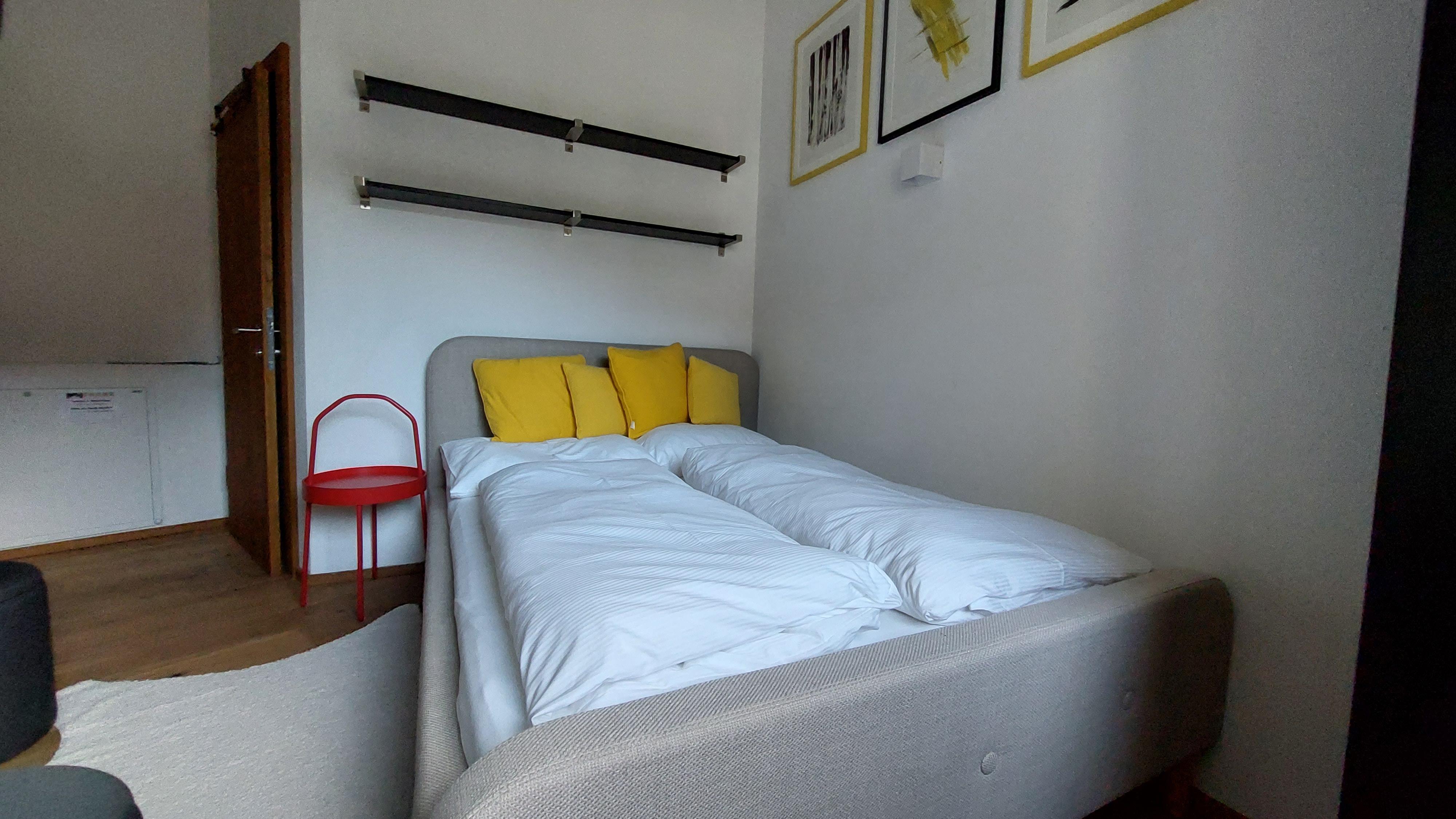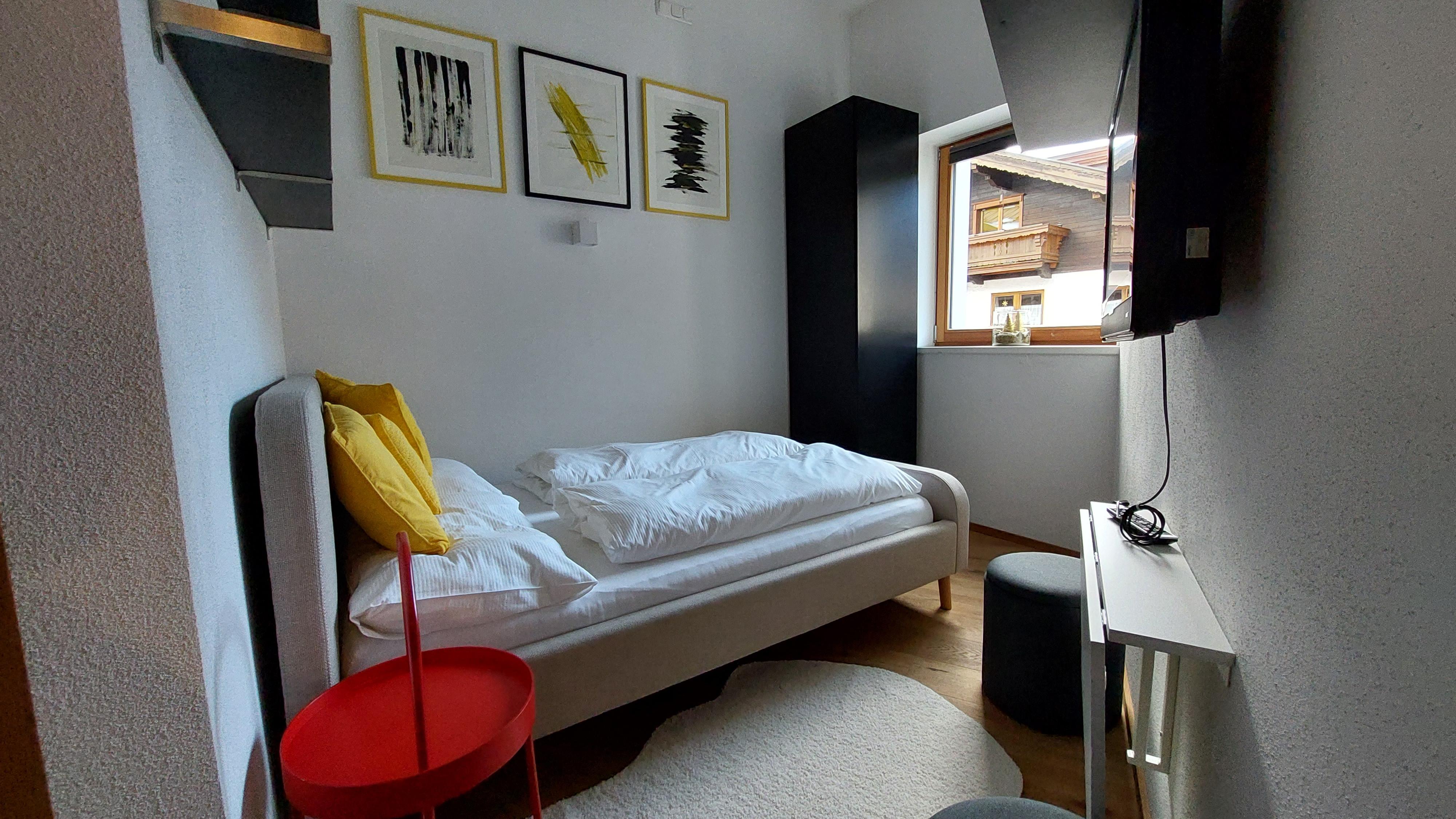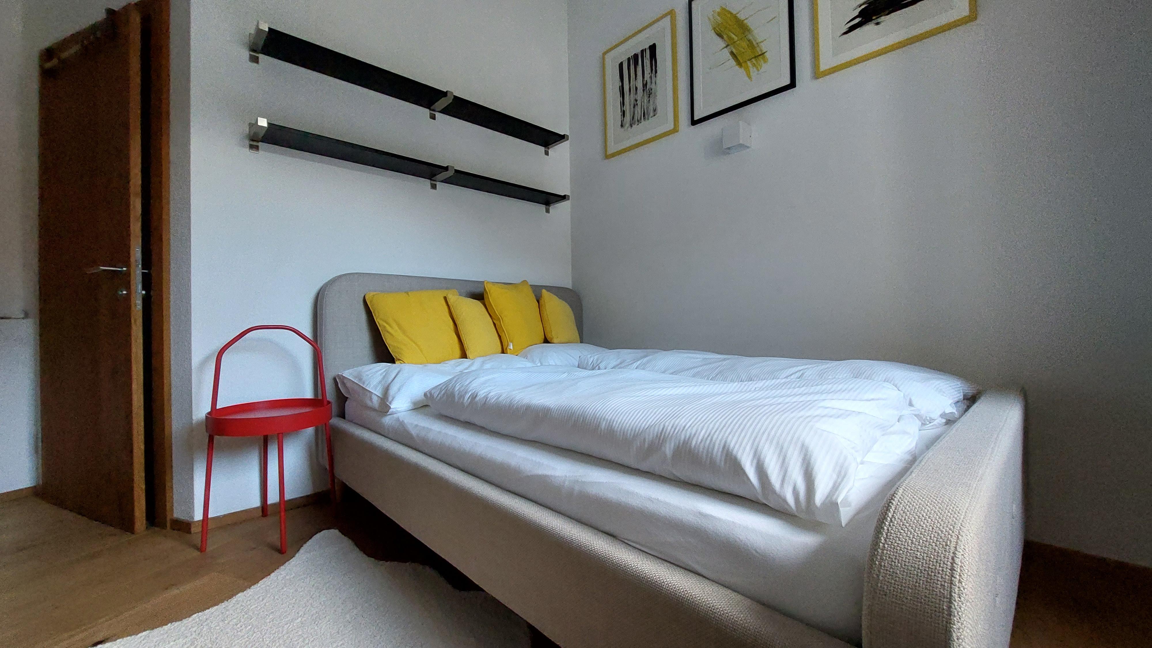 Dann buchen Sie gerne das Zimmer FRANZ“ dazu. Das Zimmer mit 12 m2 befindet sich im 1. Stock des Hauses und verfügt über 1 Doppelbett (160 cm), Dusche und WC.