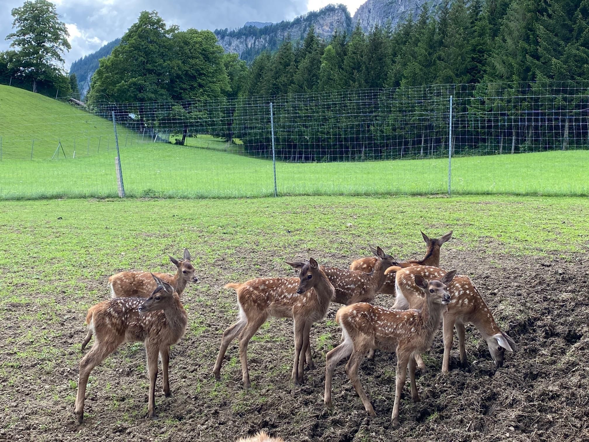 Es liegt im Erdgeschoß mit Aussicht auf die Berge und dem Hirschgehege.