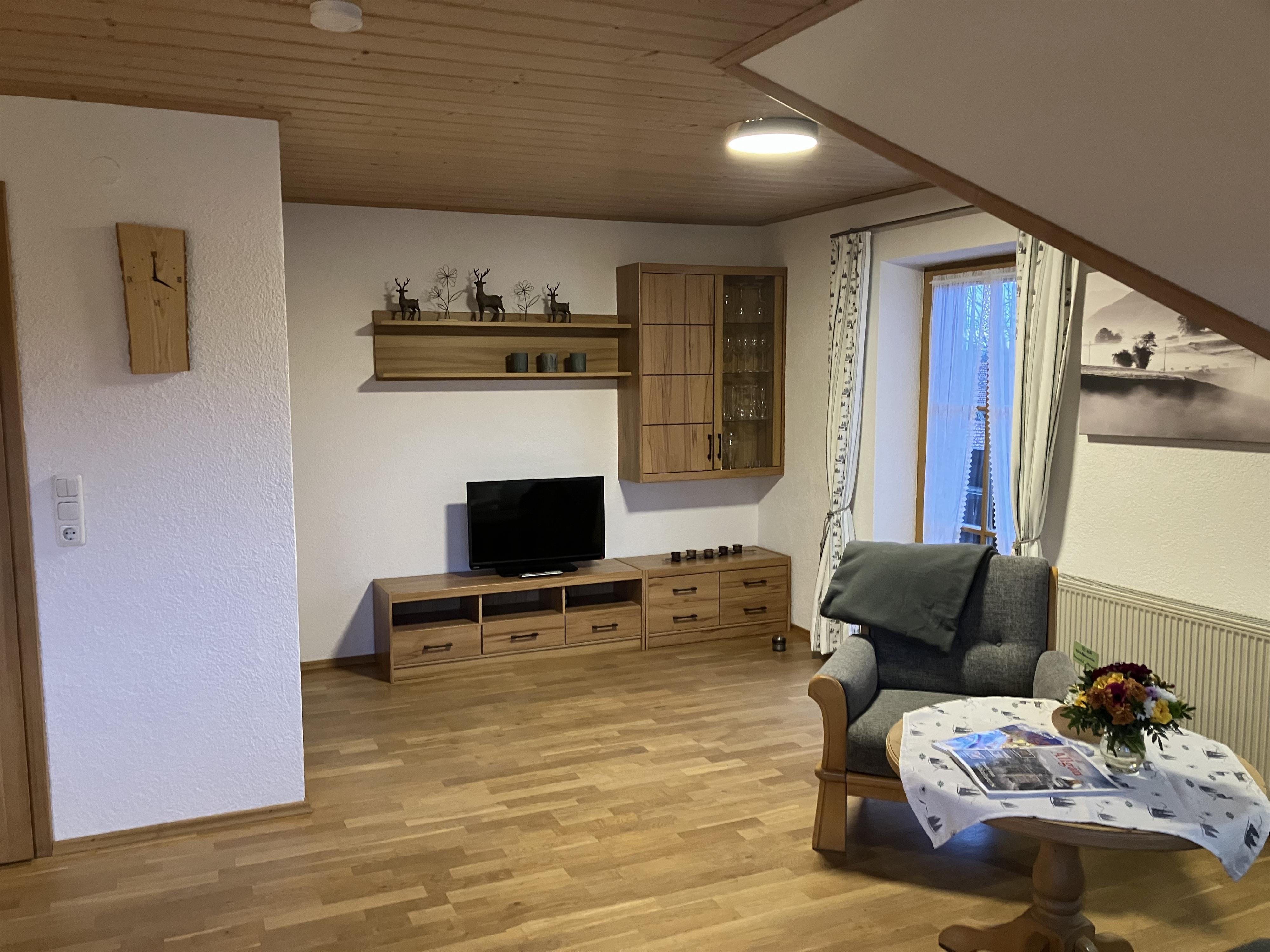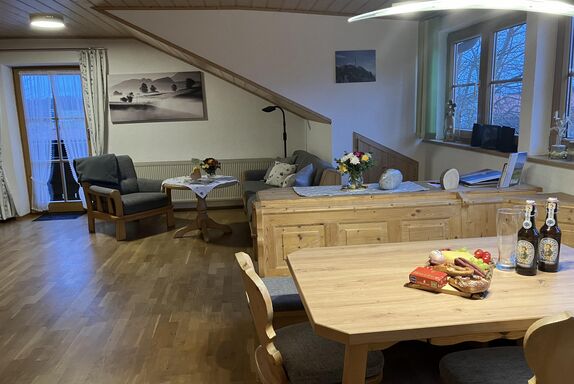 Gemütliche 2-Zimmerferienwohnung Zugspitz (64 qm) im 2. OG mit Balkon inklusive traumhaftem Bergblick, 1 separaten Schlafzimmer, einer großen Wohnküche, einem schönen Badezimmer sowie einem separaten WC. Die Wohnung ist mit Radio und TV sowie kostenlosem Wlan ausgestattet. Die Wohnung ist im ländlichen Stil eingerichtet. Brötchenservice. Komplette Baby und Kleinkindausstattung.