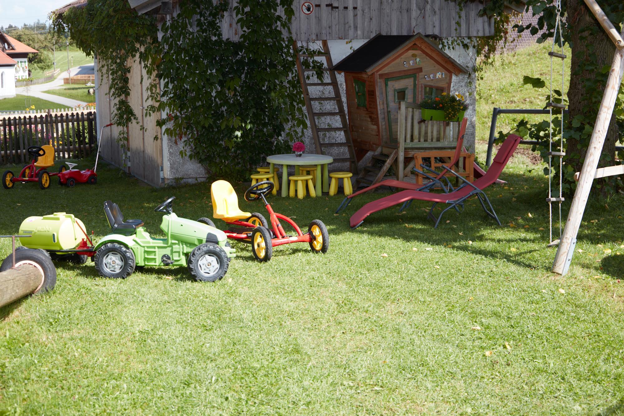 Unser Bauernhof liegt in ruhiger Lage ca. 1 km vom Nesselwanger Ortskern entfernt. Wir bieten 3 gemütlich eingerichtete Ferienwohnungen, ideal für Familienurlaub. Genießen Sie Ihre Urlaubstage in ruhiger Umgebung mit Blick auf die Allgäuer Bergwelt. Wanderwege und Loipen in unmittelbarer Nähe. Das Leben auf dem Bauernhof einmal hautnah miterleben. Zu sehen wie heute auf einem modernen landwirtschaftlichen Betrieb gearbeitet und gelebt wird. Mit etwas Glück erleben, wie ein Kalb zur Welt kommt, die Rinder auf der Weide besuchen, zuzusehen wie der Roboter unsere Kühe melkt und einmal auf einem richtig großen Traktor zu sitzen das ist das tollste für alle Kinder und auch für die Großen. Kinder toben gerne über den hauseigenen Spielplatz und wenn sie einmal genug von Spielhaus, Schaukel, Sandkasten und Rutsche haben, können sie Trampolin springen oder den Hof mit dem Kettcar unsicher machen. Sollte das Wetter einmal nicht so schön sein, stehen im Haus ein Spiel- und Sportzimmer zur Verfügung. Wir freuen uns auf Ihren Besuch!