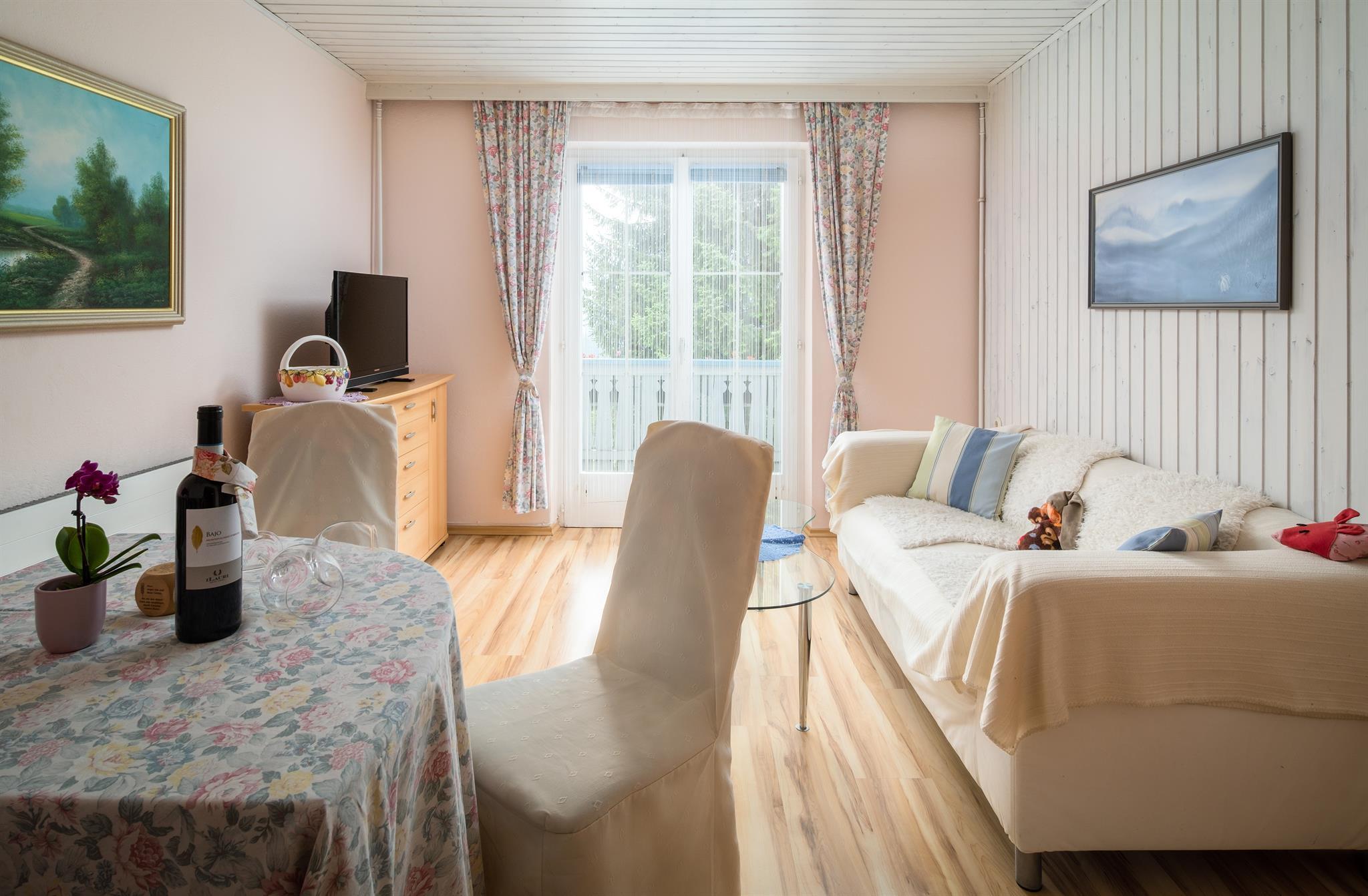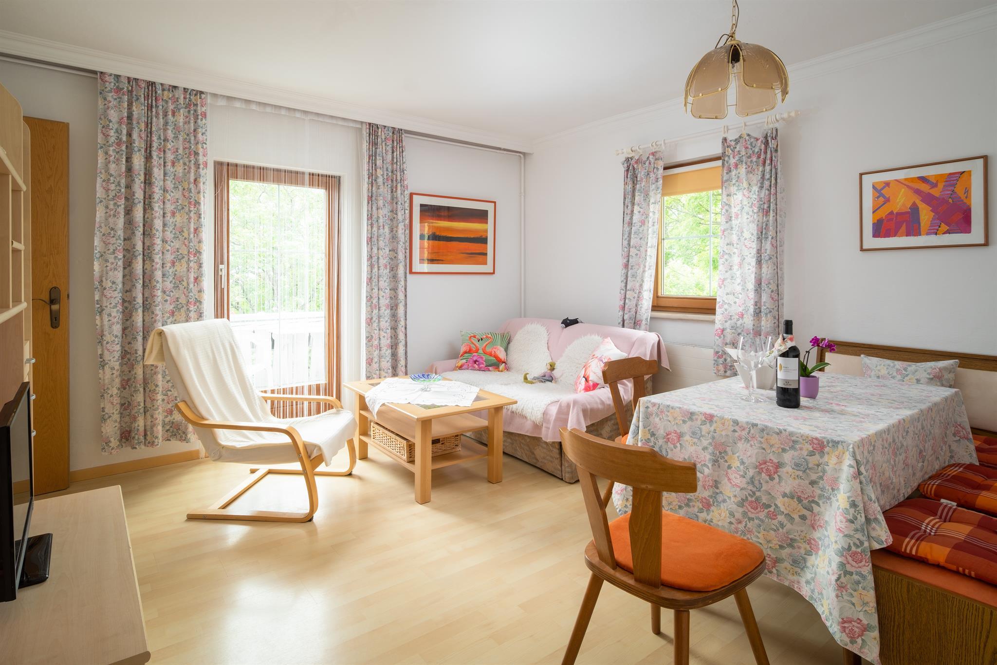 Die Ferienwohnung Holunder besteht aus einem Schlafzimmer, Wohnzimmer, Küche (Geschirrspüler), einem Badezimmer und Balkon mit Blick nach Süden (Lienzer Dolomiten).