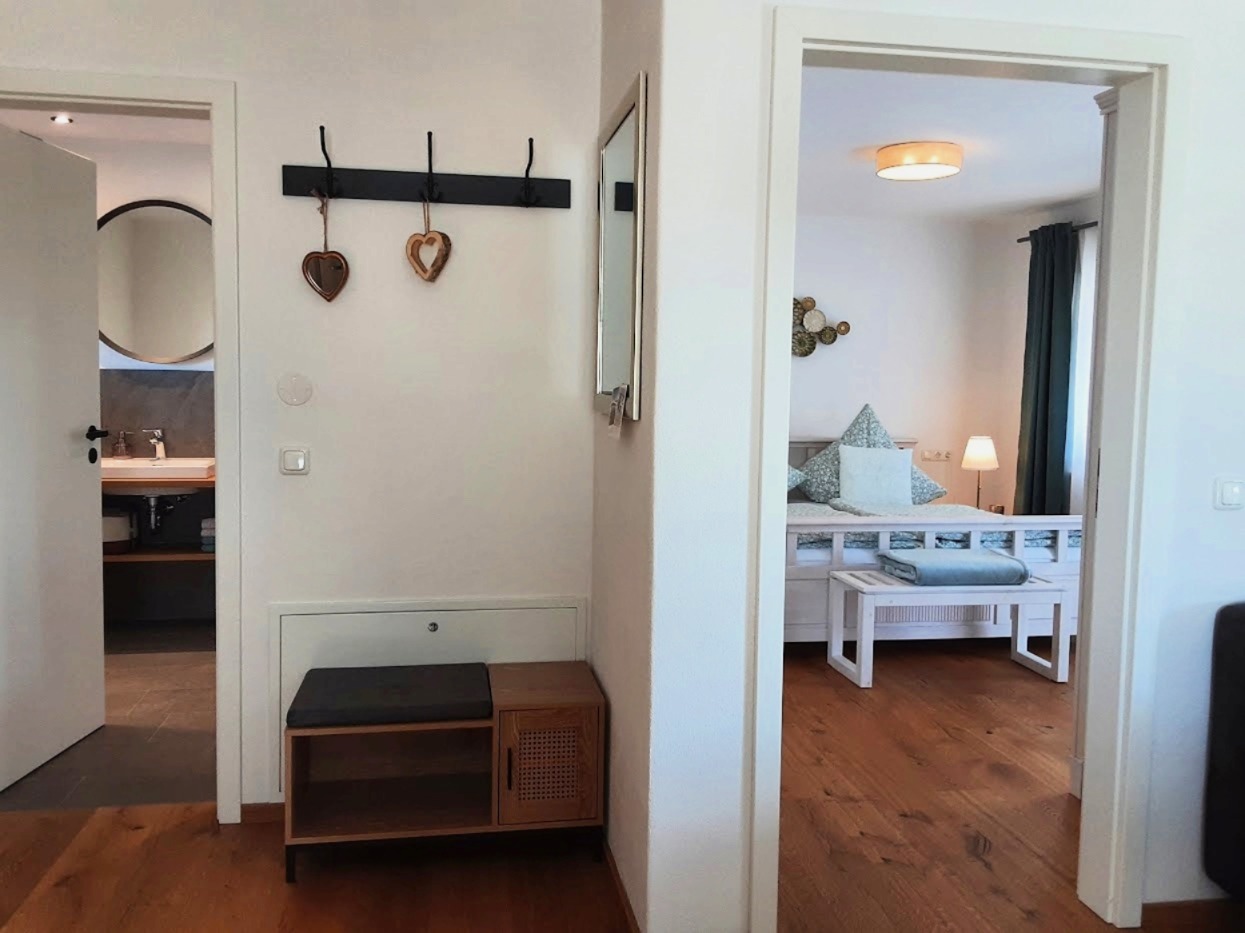 Mitten in der Urlaubsregion Chiemsee wartet unsere im Frühjahr 2020 renovierte Ferienwohnung auf Sie. Knesing ein schönes Fleckerl Erde umgeben von Wiesen und Wäldern liegt nur 6 km vom traumhaften Chiemsee entfernt. Dort liegt unsere geschmackvoll eingerichtet Ferienwohnung mit 50 qm, ideal für 2 Personen. Geeigneter Ausgangspunkt für Fahrradtouren, Wanderungen und Golf (Golfplatz Hart nur 1 km entfernt).Die lichtdurchfluteten Räumlichkeiten befinden sich im ersten Stock die Sie über einen separaten Eingang erreichen. Es erwartet Sie eine Wohnung mit neuen Holz-Parkettböden, abgestimmt zur kompletten Einrichtung. Für ein angenehmes Raumklima an kälteren Tagen sorgt die Fußboden-Heizung die in allen Räumen vorhanden ist. Ein abschliessbarer Raum für Ihre Fahrräder runden das Angebot ab.Unsere Ferienwohnung befindet sich in ruhiger Ortsrandlage. Die Entfernung zum nächst gelegenen Bäcker und Supermarkt sind 4 km. In den umliegenden Orten befinden sich zahlreiche Speiselokale, Cafes und Eisdielen die Sie auch gut mit dem Fahrrad erreichen können. Zum Chiemseestrand und zum Alzbad nach Truchtlaching sind es ca. 10 min. Die Kreisstadt Traunstein mit Einkaufsmöglichkeit ist 12 km entfernt, nach Salzburg sind es 40 km und nach München 100 km.