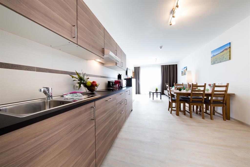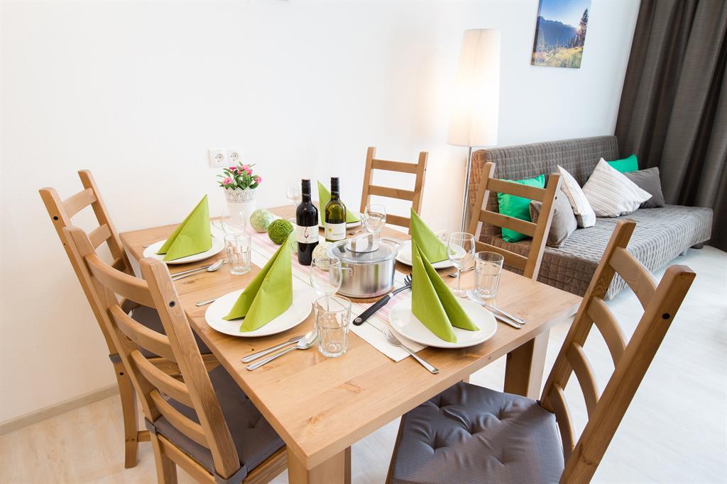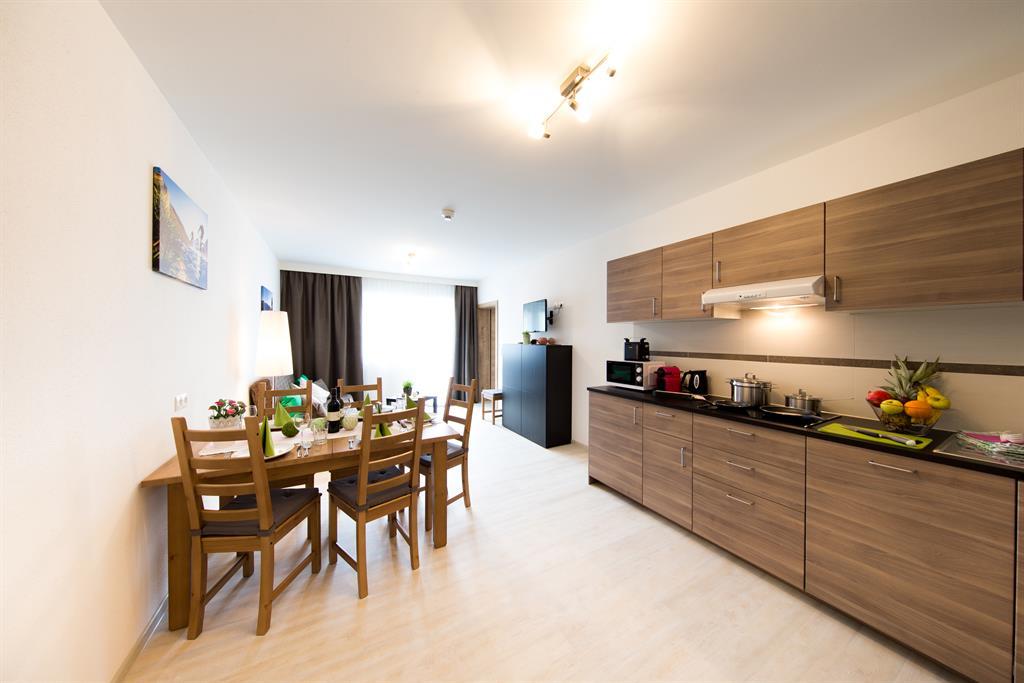 Nichtraucher-Appartement mit komfortabler, moderner Ausstattung, Balkon, Wohrnraum mit Küche (Kochfeld, Mikro, Geschirrspüler, Kaffeemaschine, Toaster, Wasserkocher, uvm)