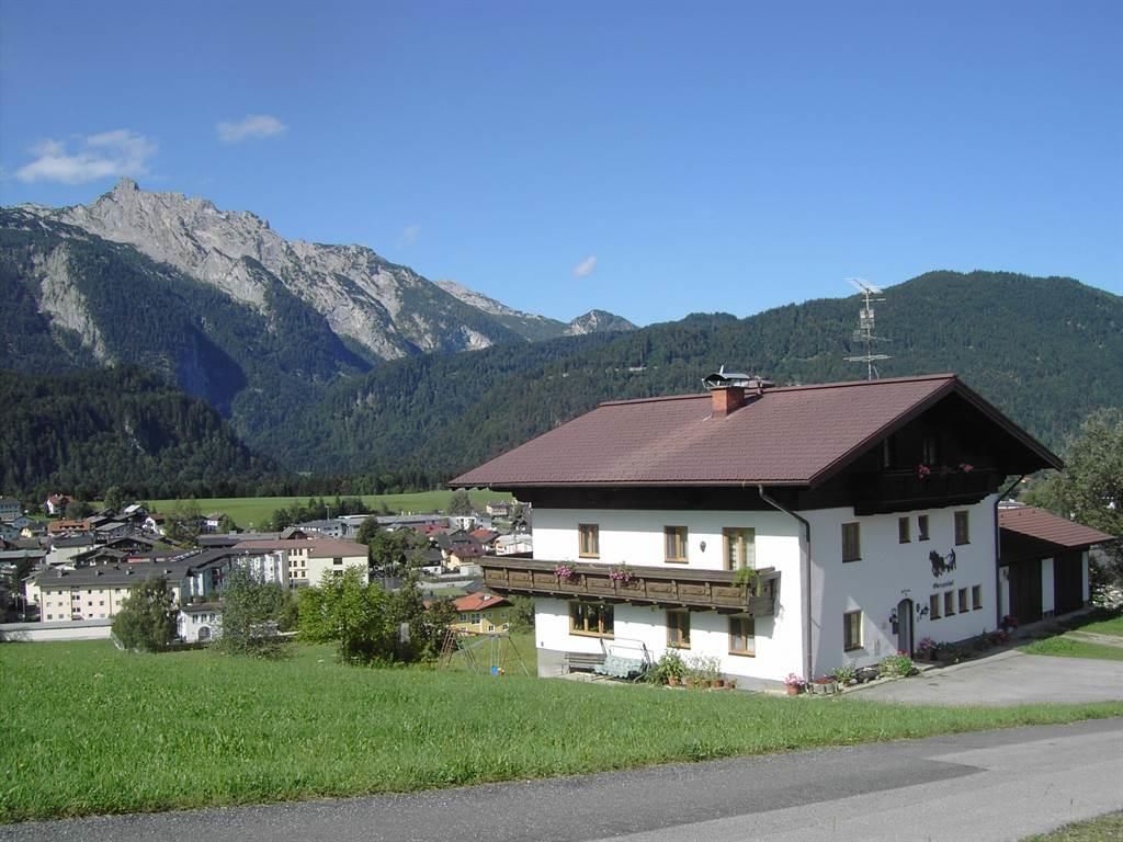 Bauernhof in sonniger und ruhiger Lage mit Blick auf den Ort und zum Tennengebirge, 600 m bis zum Ortszentrum. Unsere 2 Vierbett- und 3 Doppelzimmer sind jeweils mit Dusche, WC, Balkon einer kleinen Sitzgrupppe und TV ausgestattet. Aufenthaltsraum mit TV und Radio; Kühlschrank; große Liegewiese; Parkplatz vor dem Haus; reichhaltiges, abwechslungsreiches Frühstück mit Produkten vom eigenen Hof; Lift und Langlaufloipen in unmittelbarer Nähe des Hauses.