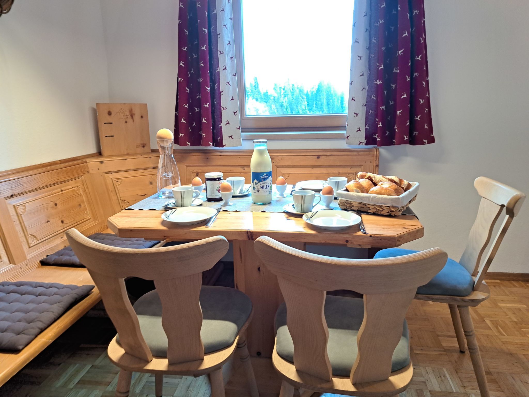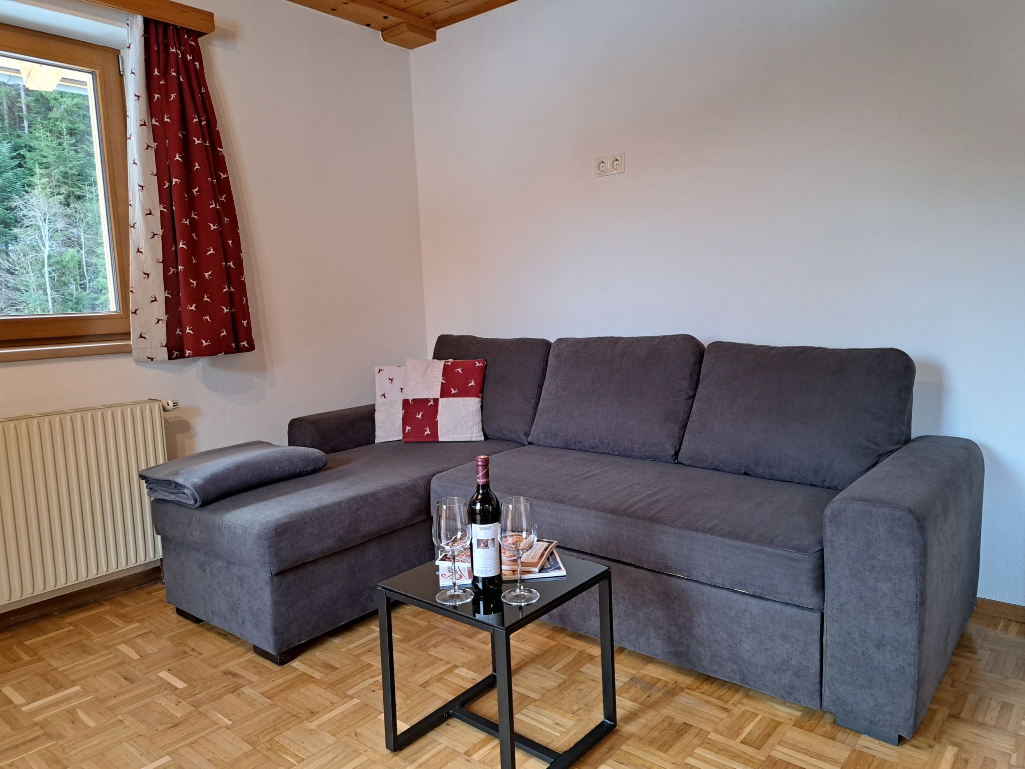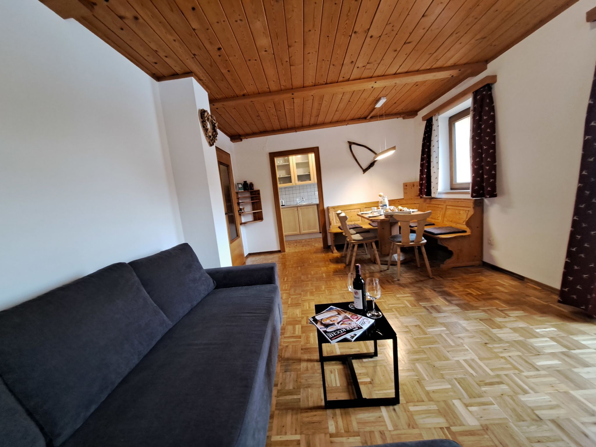 Wiesenduft, 2-Zimmer-Wohnung 48 m2. Schön und mit viel Holz eingerichtet: 1 Doppelzimmer. Wohnküche (Backofen, Geschirrspüler, 4 Glaskeramikplatten, Toaster, Wasserkocher, Tiefkühler, elektrische Kaffeemaschine) mit 1 Ausziehbett, Esstisch und Sat-TV. Ausgang zum Balkon. Dusche/WC. Heizung. Balkon. Balkonmöbel. Schöne Sicht auf die Berge. Zur Verfügung: Haartrockner. Internet (Wireless LAN, gratis). Parkplatz beim Haus. Bitte beachten: geeignet für Familien. Nichtraucher-Unterkunft. Rauchmelder.
