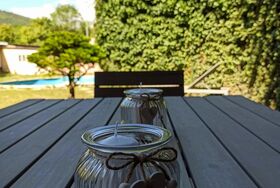 Der Wohnbereich ist mit einer gemütlichen ausziehbaren Couch ausgestattet. Der Essbereich bietet Platz für bis zu 6 Personen. Der Fernseher verfügt über Satelliten TV. Im Schlafzimmer befindet sich ein großes Doppelbett (1,80 x 2 m) und ein großer Spiegelschrank. Bettwäsche ist vorhanden. Die Küche ist komplett ausgestattet mit Herd, Backofen, Kühlschrank, Geschirrspüler, Mikrowelle, Nespresso-Kaffeemaschine, Wasserkocher, Eierkocher und natürlich sämtlichem Geschirr, Weingläsern, Töpfen und Pfannen. Weiters ist hier auch eine Waschmaschine vorhanden. Im Bad mit Dusche werden Handtücher, Shampoo und Duschgel zur Verfügung gestellt. Auch ein ruhiger, uneinsichtiger Garten ladet zum Verweilen ein.