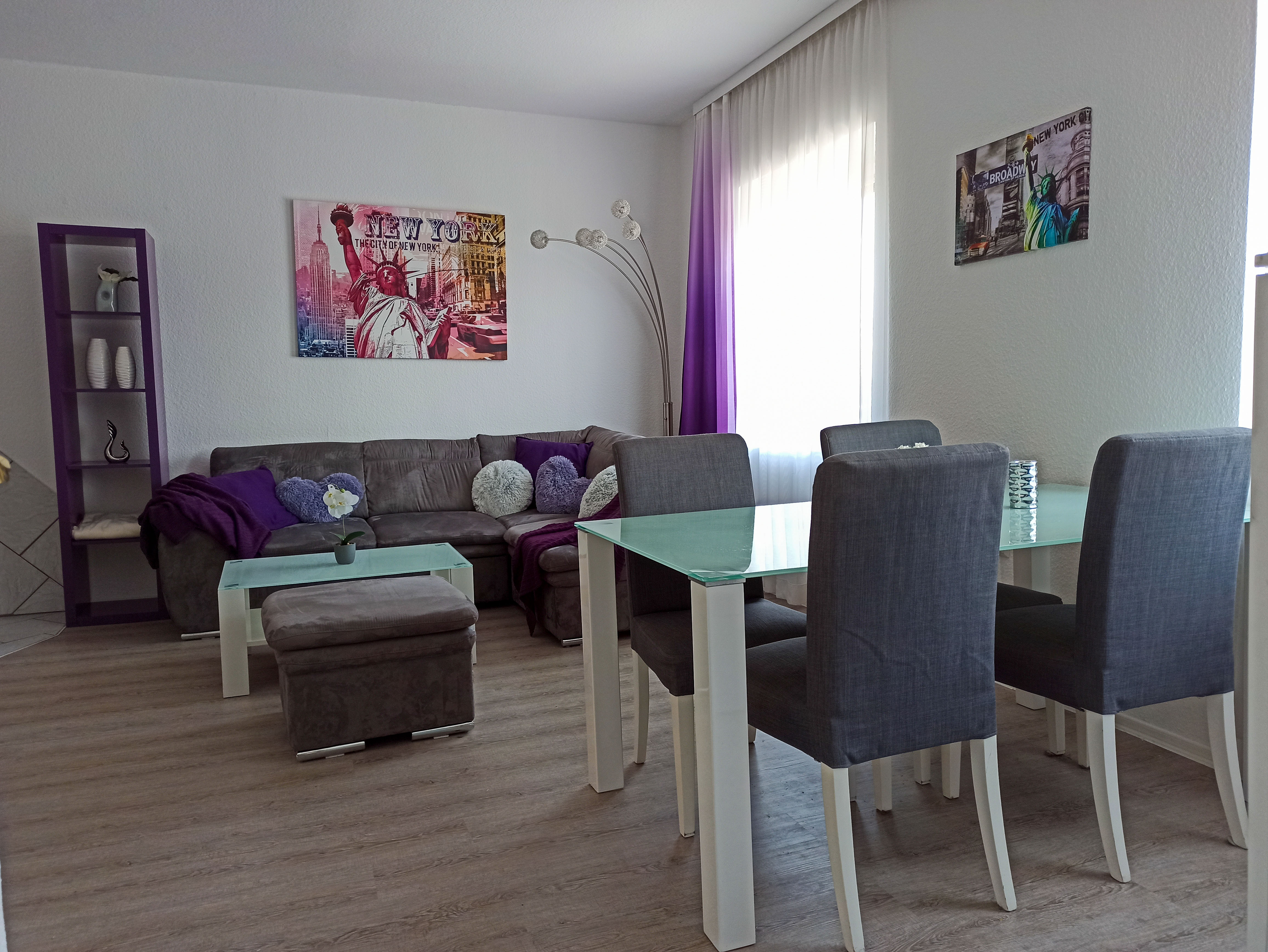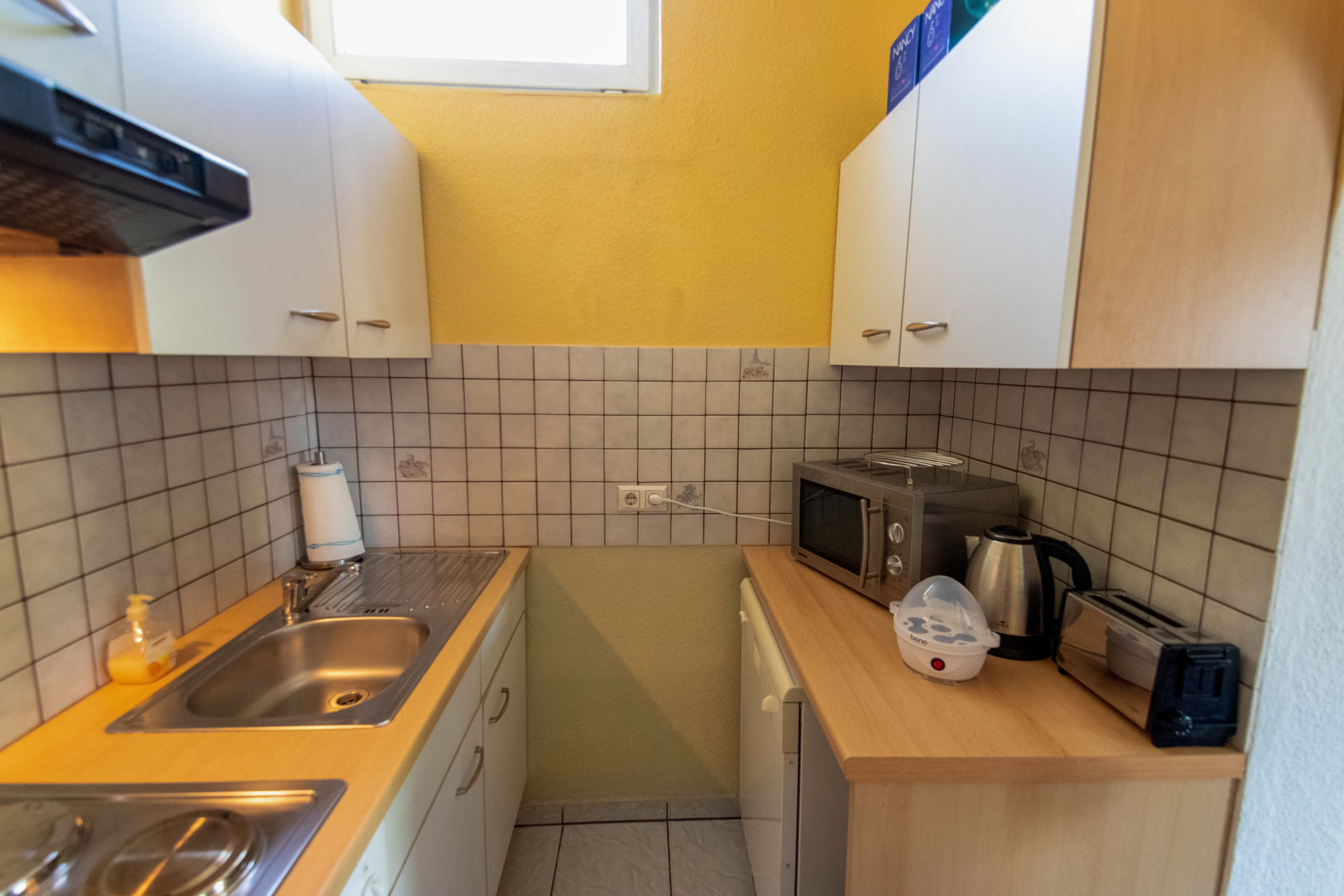 Im Obergeschoss haben wir ein Appartment eingerichtet, das sich optimal für längere Aufenthalte oder auch den Urlaub mit Kindern eignet. Die Wohnung besteht aus einem Wohn-/Esszimmer, Schlafzimmer, Küche, Bad mit Dusche, WC und Vorraum.