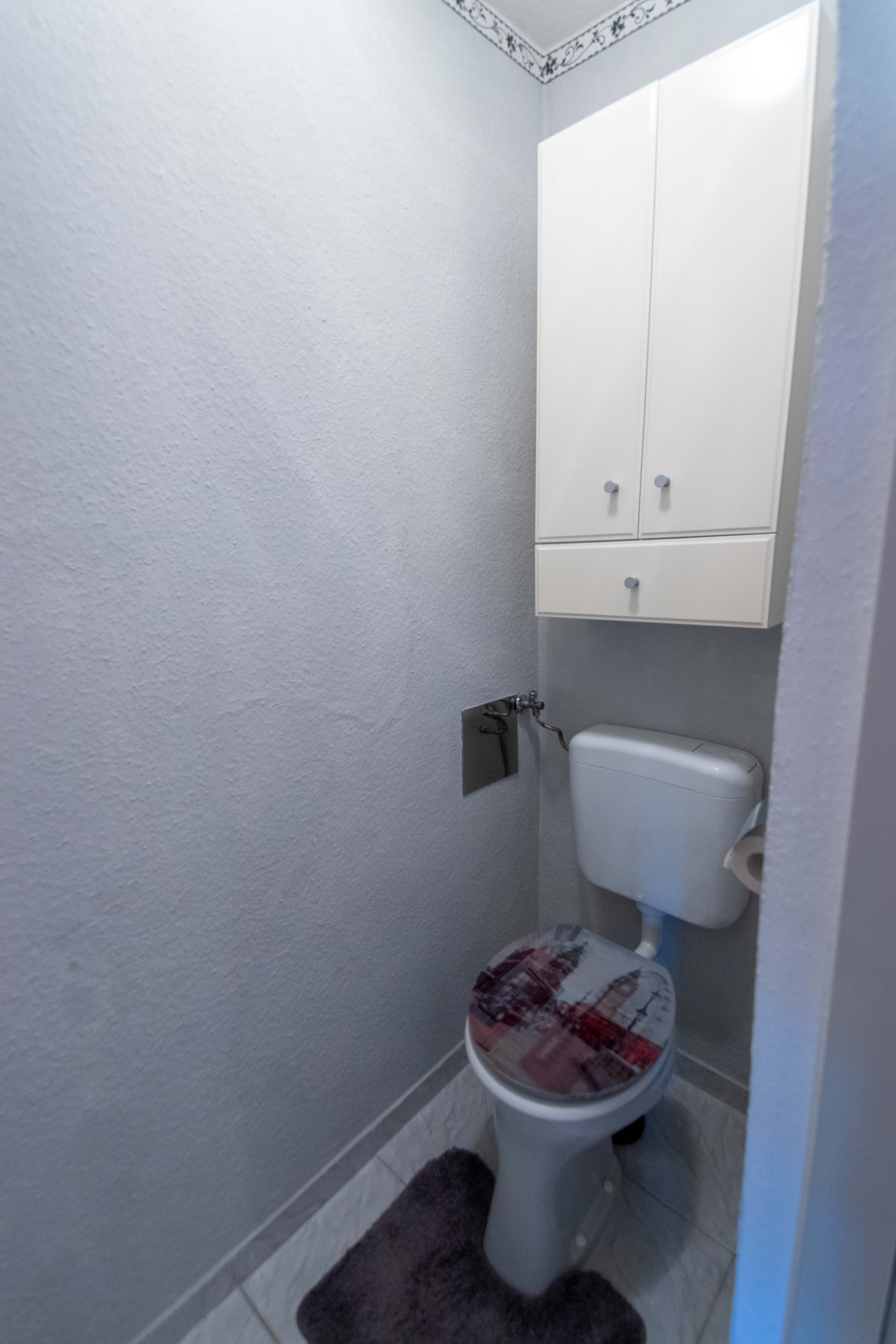 Im Bad, mit Dusche und WC, befindet sich auch eine Waschmaschine. Für die Entspannung im Freien bietet der ruhige, uneinsichtige Garten die ideale Gelegenheit, um sich eine Auszeit auf eine der Liegen zu gönnen.