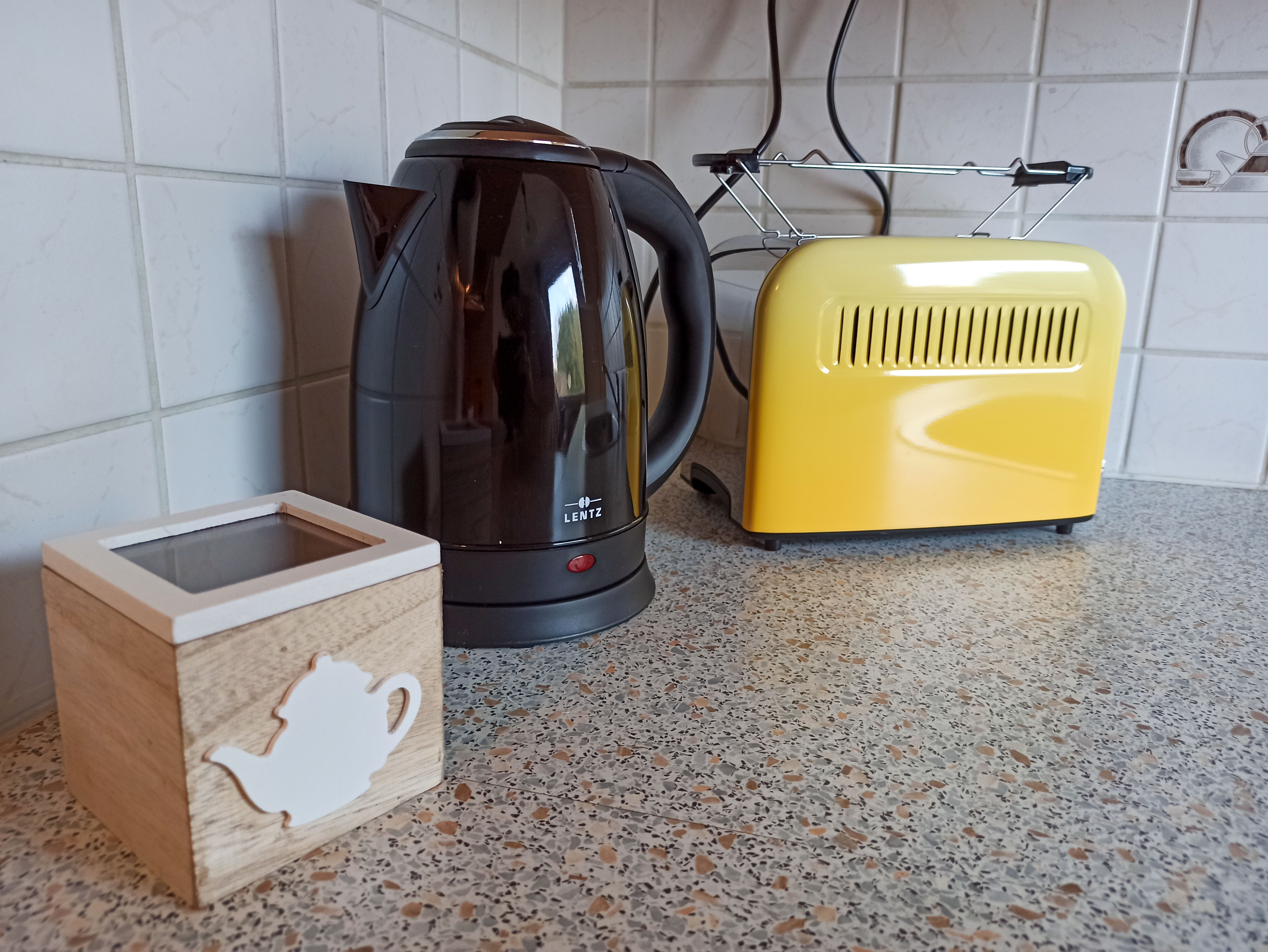Die Küche ist komplett ausgestattet mit Herd, Backofen, Kühlschrank, Gefrierfach, Geschirrspüler, Mikrowelle, Nespresso-Kaffeemaschine, Wasserkocher, Eierkocher und natürlich sämtlichem Geschirr, Töpfen und Pfannen.