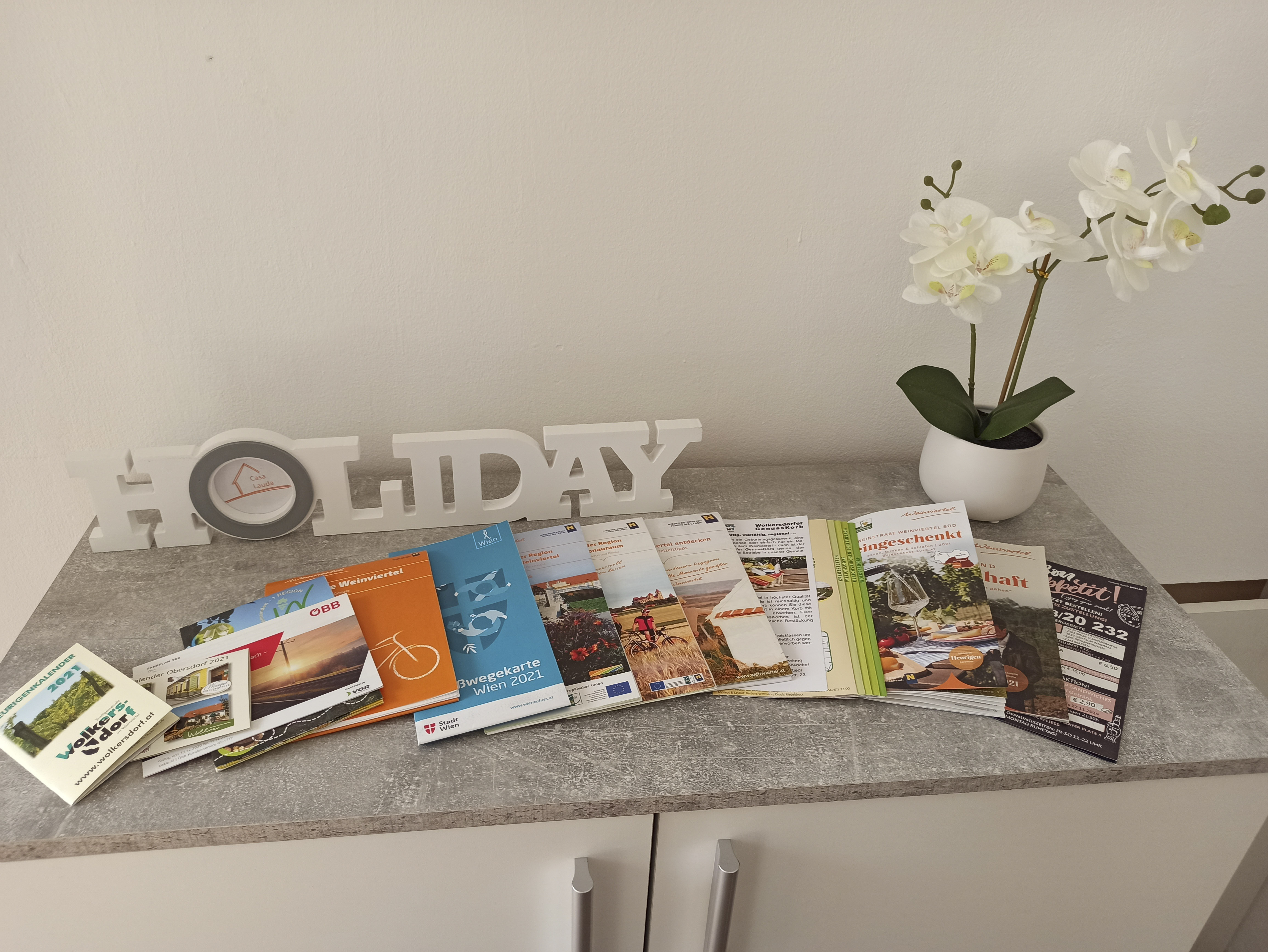 Nur 5 Autominuten entfernt liegt die kulturell bedeutende Kleinstadt Wolkersdorf, bekannt für ihr Schloss und ihre lebendige Kulturszene. Wien ist in etwa 15 Fahrminuten erreichbar. Radwege führen durch die Weinberge, ins Marchfeld und die Hügel rund um Wolkersdorf. Die Region um Wolkersdorf bietet zudem zahlreiche kulturelle und Freizeitangebote sowie Informationen zu Ab-Hof-Verkäufen, Heurigen und Gastrobetrieben.
