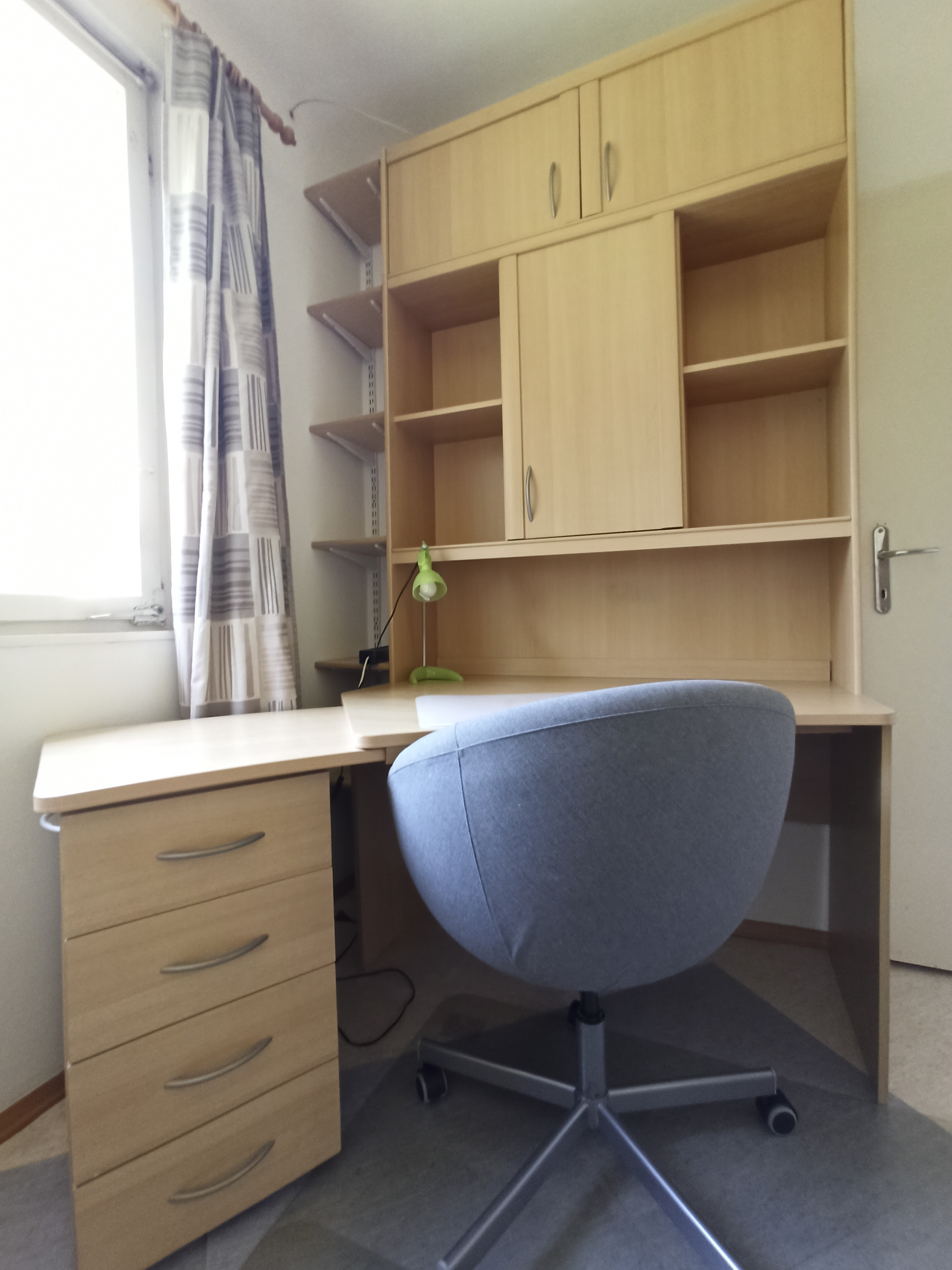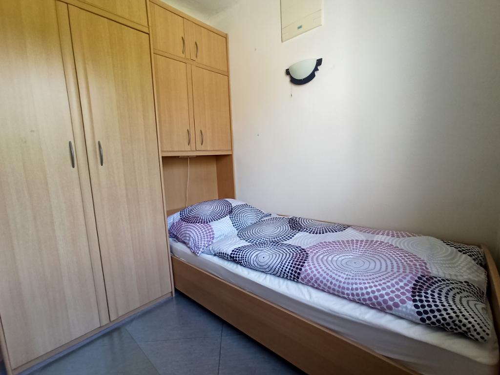 Ein weiteres Zimmer mit einem Einzelbett und einem Schreibtisch ist vorhanden.
