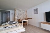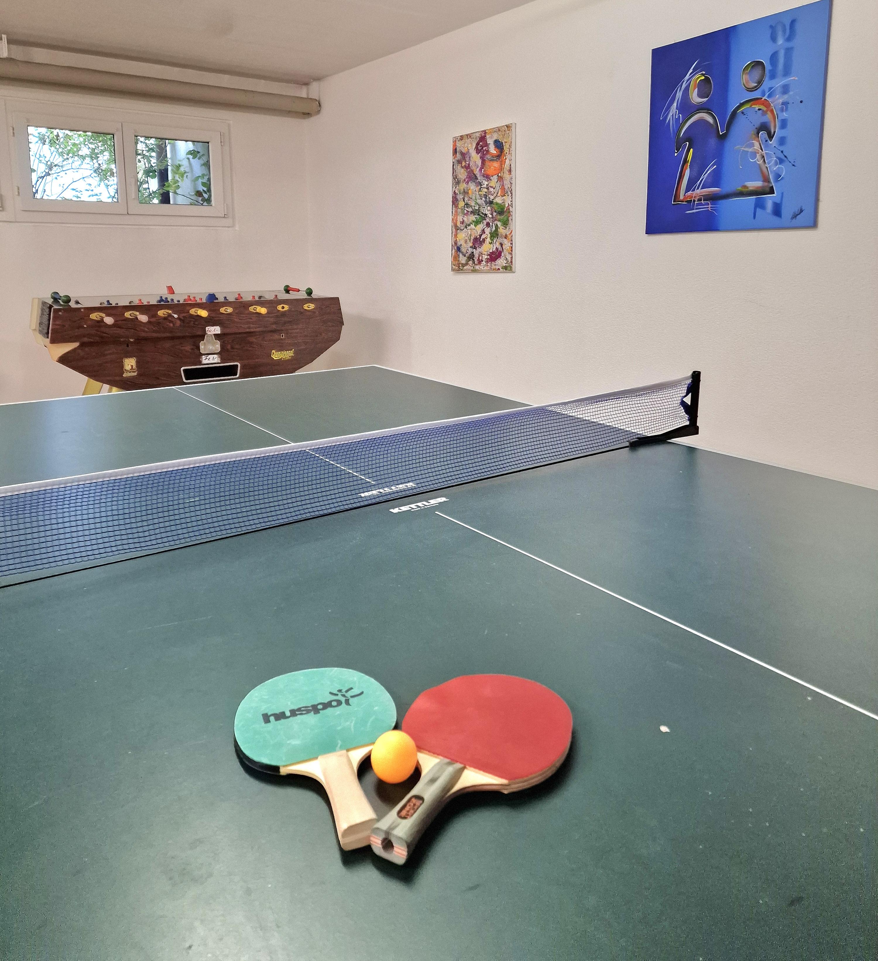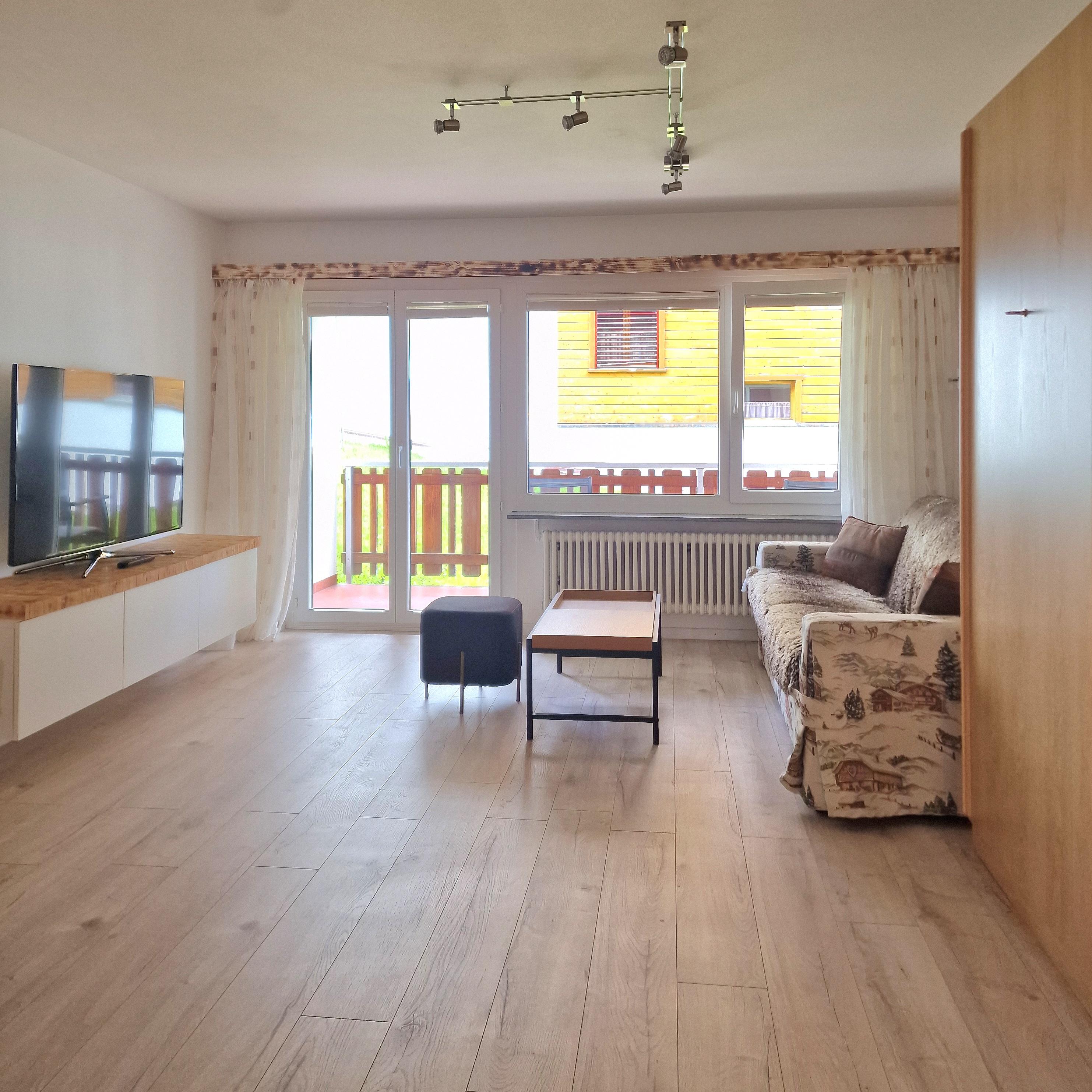 Grosse 1-Zimmerwohnung (43m2), familienfreundlich, zentrale Lage: Wohn-/Ess-/Schlafzimmer mit 1 Doppel-Schlafsofa und 3 Einzelbetten, TV, Radio, gratis WiFi, separate Küche mit Mikrowelle, u.v.m., Dusche/WC. Gemeinschaftsraum, Abstellraum, Garage im Haus inklusive. In nächster Nähe: Haltestelle Ortsbus, Gemmi-Bahnen, Snowpark Sportarena (Kinderskilift). In ca. 7 Min. Fussweg: Dorfzentrum, Thermalbäder, Shopping, Restaurants. Nichtraucherwohnung. Haustiere nicht erlaubt.