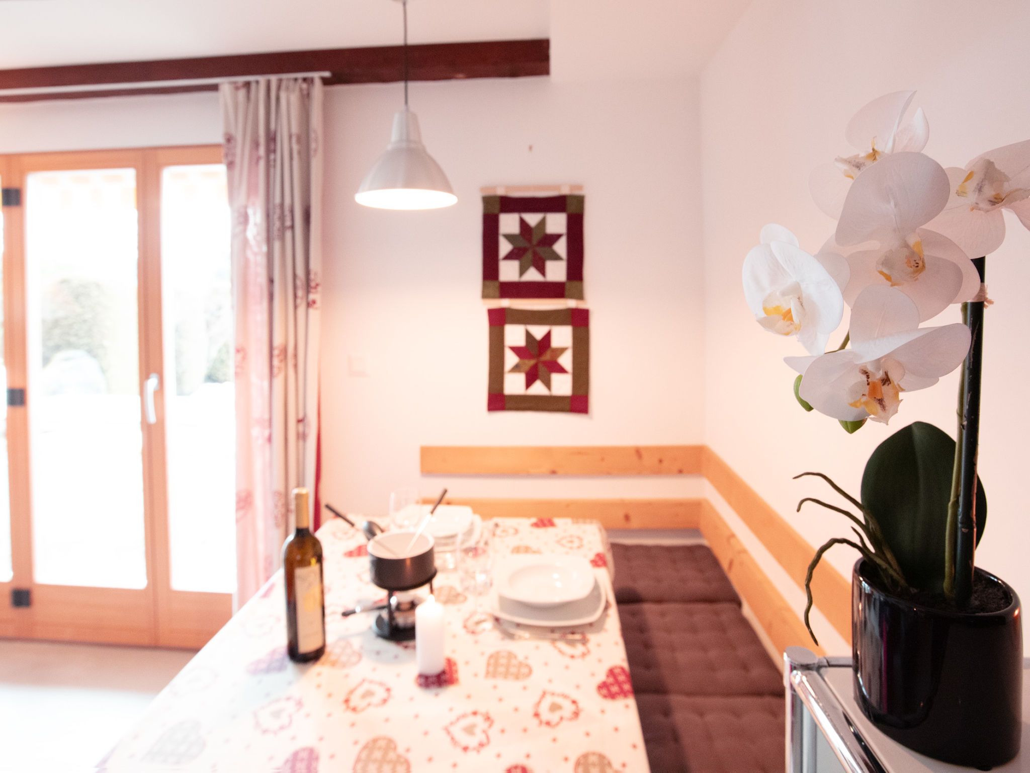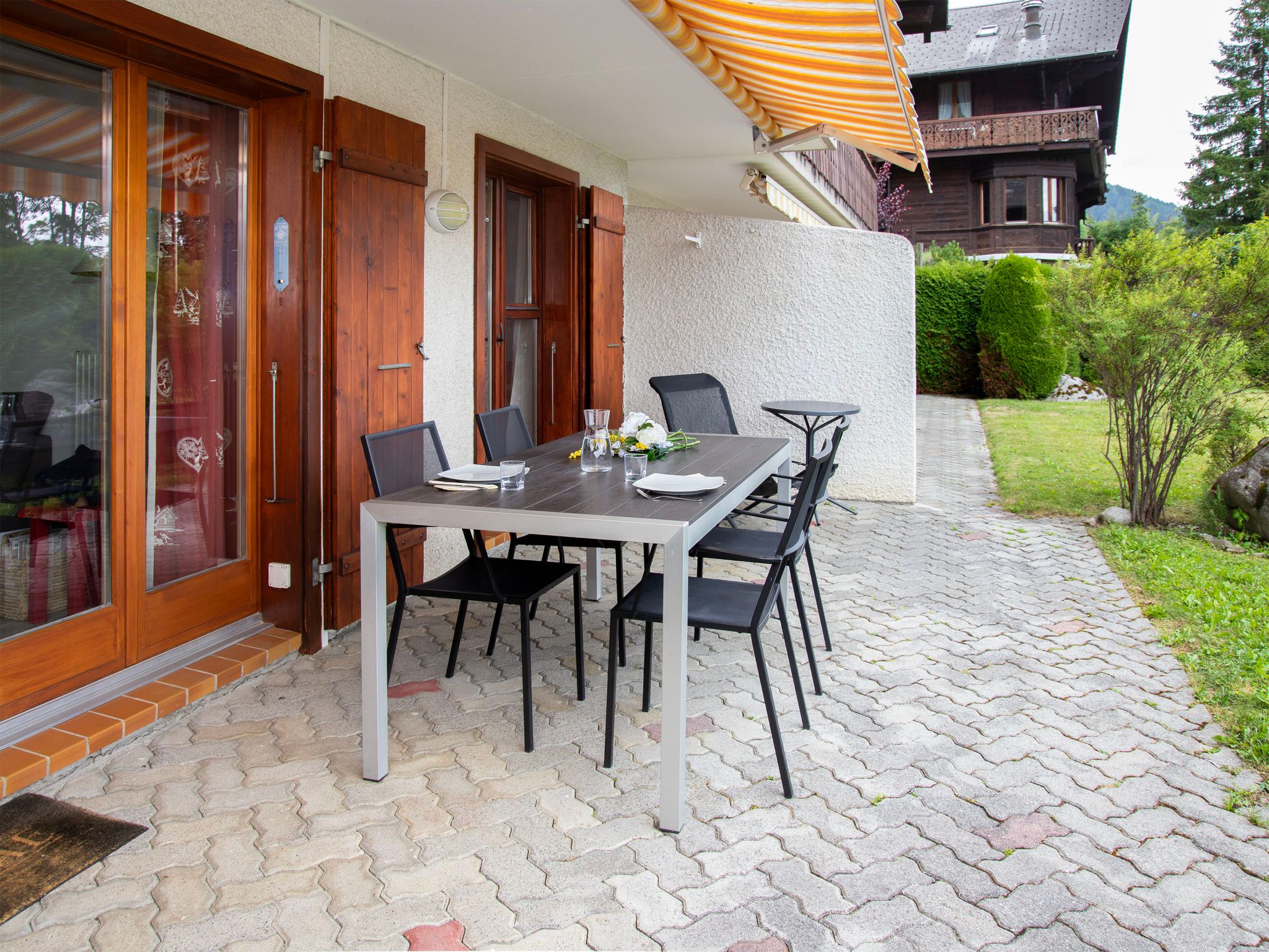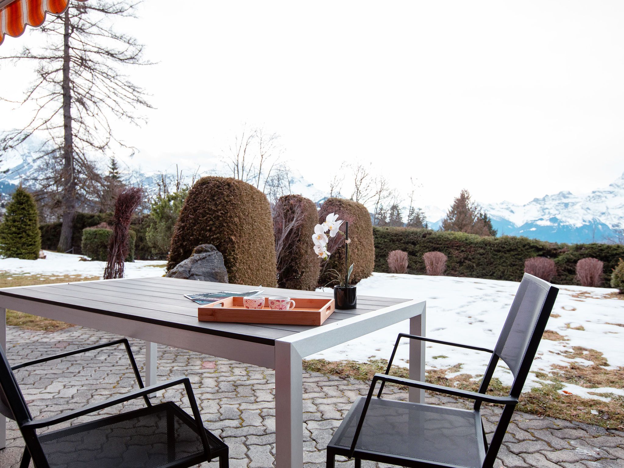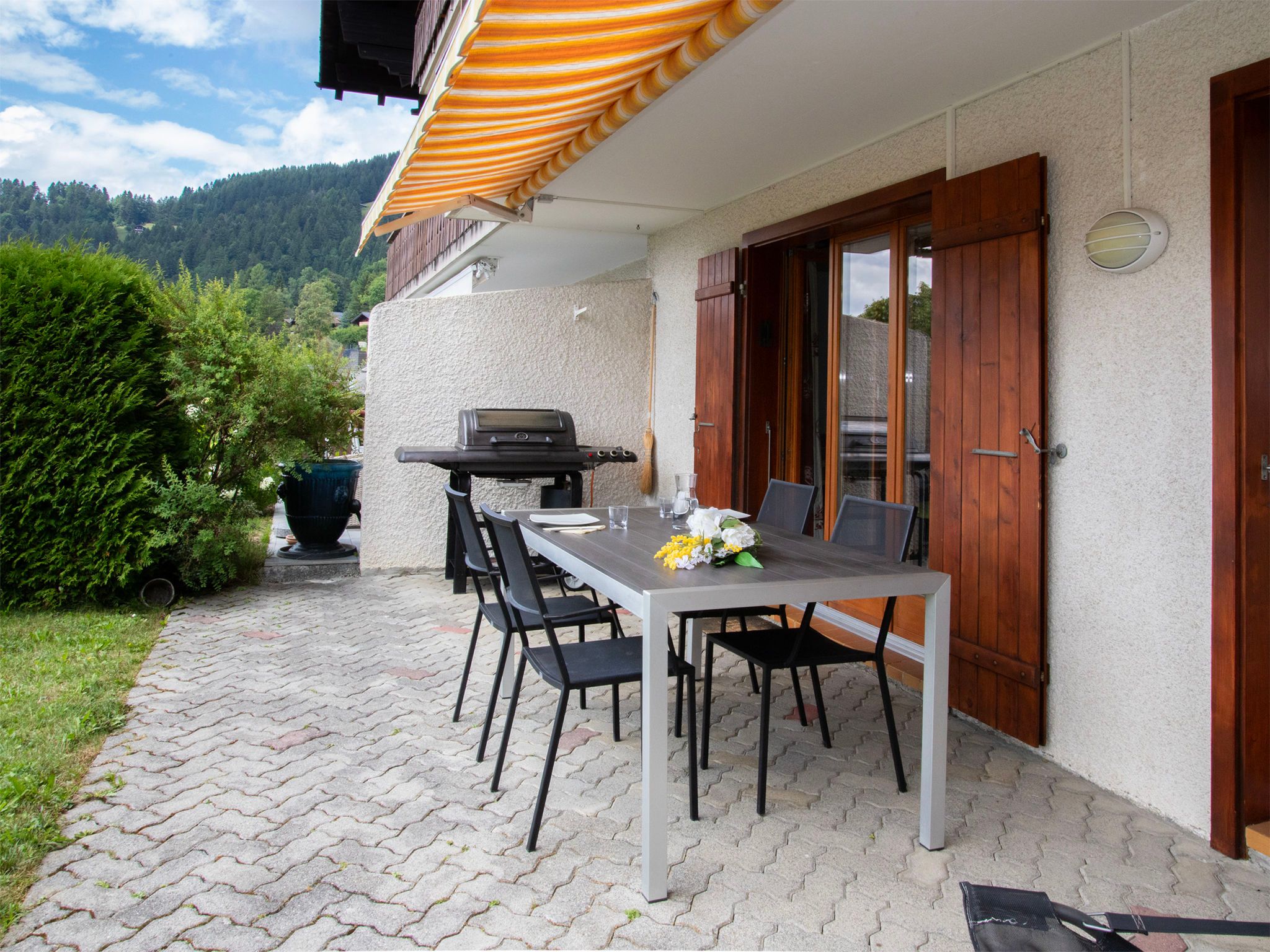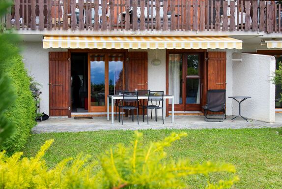 Chantebrise A2, 2-Zimmer-Wohnung 45 m2, im Erdgeschoss, Südlage. Hell, zweckmässig und komfortabel eingerichtet: Wohn-/Esszimmer mit Esstisch und TV (Flachbildschirm). Ausgang zum Garten, Richtung Süden. 1 Zimmer mit 1 franz. Bett (1 x 160 cm). Ausgang zum Garten, Richtung Süden. Offene Küche (Backofen, Geschirrspüler, 4 Glaskeramikplatten, Mikrowelle, Tiefkühler, elektrische Kaffeemaschine, Kapseln für die Kaffeemaschine (Nespresso) extra). Bad/WC. Grosser Garten, Südlage. Terrassenmöbel. Schöne Sicht auf die Berge. Zur Verfügung: Haartrockner. Internet (WLAN, gratis). Parkplatz Nr. 9 (1 Auto). Bitte beachten: Nichtraucher-Unterkunft.