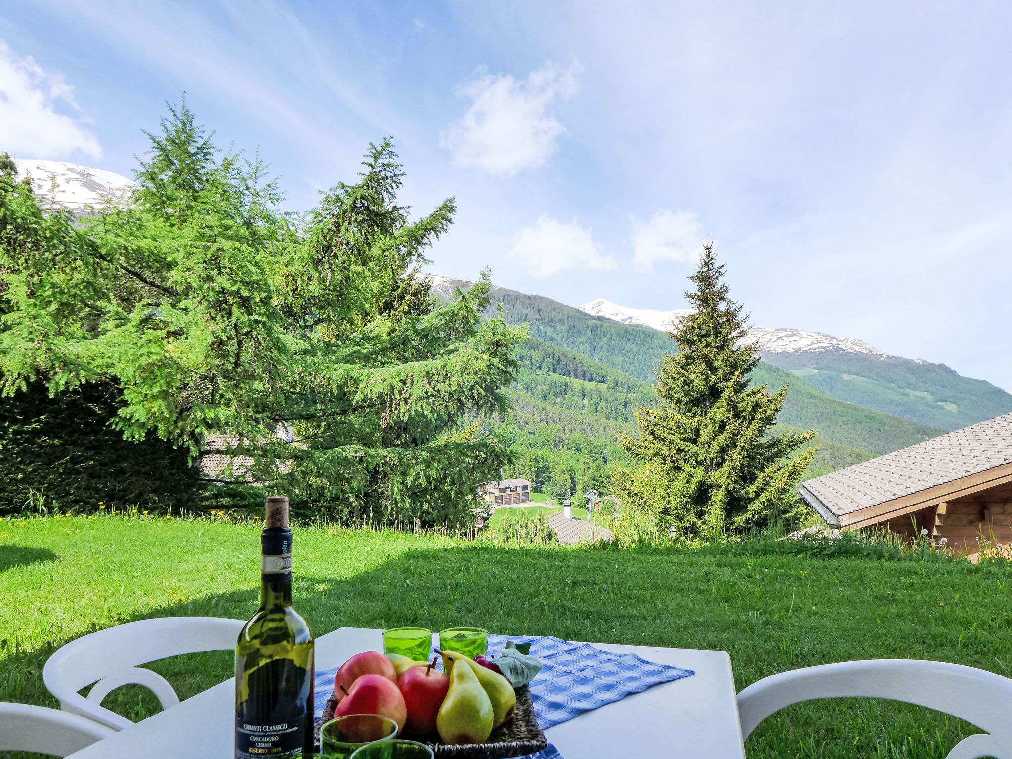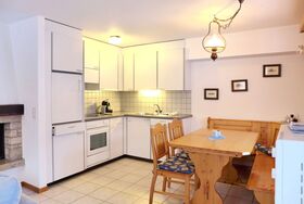 3-Zimmer-Wohnung im Erdgeschoss. Geräumig und hell, sehr komfortabel und gemütlich eingerichtet: offenes Wohn-/Esszimmer mit offenem Kamin, Essecke und Digital-TV. Ausgang zur Terrasse. 1 Zimmer mit 1 Doppelbett (2 x 90 cm, Länge 200 cm). 1 Kinderzimmer mit 1 Bett (80 cm, Länge 190 cm), 1 x 2 Etagenbetten (80 cm, Länge 190 cm). Offene Küche (4 Glaskeramikplatten, Toaster, Wasserkocher, Mikrowelle, elektrische Kaffeemaschine, Kapseln für die Kaffeemaschine (Nespresso) extra, Racletteofen, Fondue Set (Käse)). Dusche/WC. Grosse Terrasse, Gartensitzplatz. Terrassenmöbel, Liegestühle. Herrliche Panoramasicht auf die Berge und die Landschaft. Zur Verfügung: Waschmaschine, Holz (extra). Internet (WLAN, gratis). Garage in 400 m. Bitte beachten: Nichtraucher-Haus. 1 kleines Haustier/Hund erlaubt. Rauchmelder, Feuerlöscher.