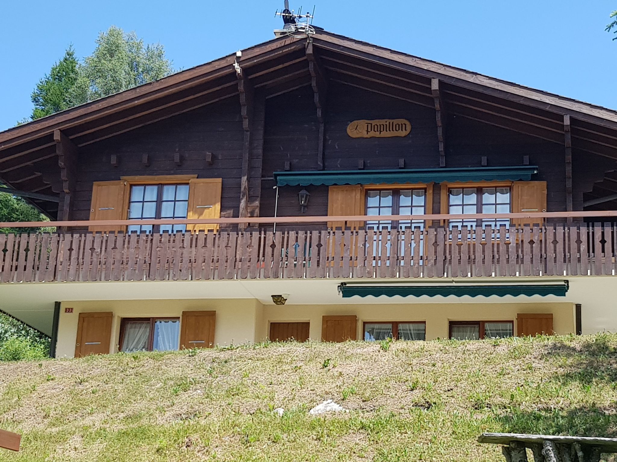 Sehr schönes Zweifamilienhaus Chalet Papillon, 1'600 m.ü.M.. Ruhige, sonnige Lage am Hang. Im Hause: Skiraum, Zentralheizung. Zufahrt bis 100 m zum Grundstück. Im Winter bitte Schneeketten mitbringen. 100 m steiler Fussweg bis zum Haus. Parkplatz. Lebensmittelgeschäft 3.5 km, Restaurant, Bushaltestelle 300 m, Bahnstation Visp 12 km. Sessellift 400 m, Skipisten 300 m, Skischule 500 m.