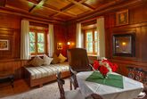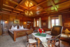 Großes, stilvoll eingerichtetes Zimmer mit Du/WC. Besondere Atmosphäre durch schöne Antikmöbel und Holzvertäfelung. Südbalkon mit Blick auf Chiemgauer Alpen und Alztal. Das Doppelbett hat eine Größe von 1,80 m x 2,00 m. Ein Babybett kann auf Anfrage und Aufpreis gestellt werden.