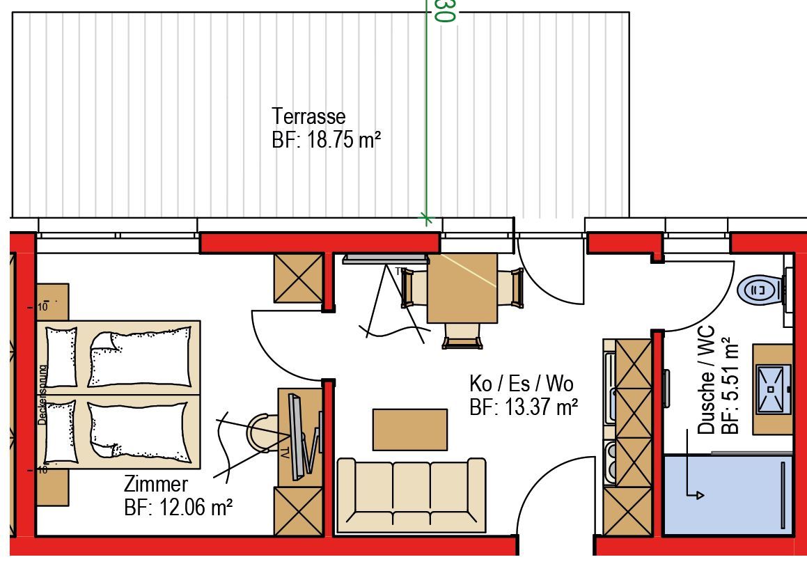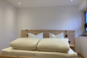 Unsere Ferienwohnung (30m²) ist ideal für Pärchen und besteht aus einer Wohn-/Küche mit gemütlicher Couch, Essecke und voll ausgestattetem Küchenblock, einem Schlafzimmer mit Doppelbett sowie einem Badezimmer mit Dusche/WC und wurde im Jahr 2022 neu erbaut. Die Möbel und Böden aus heimischen Hölzern strahlen angenehme Wohlfühlatmosphäre aus.
