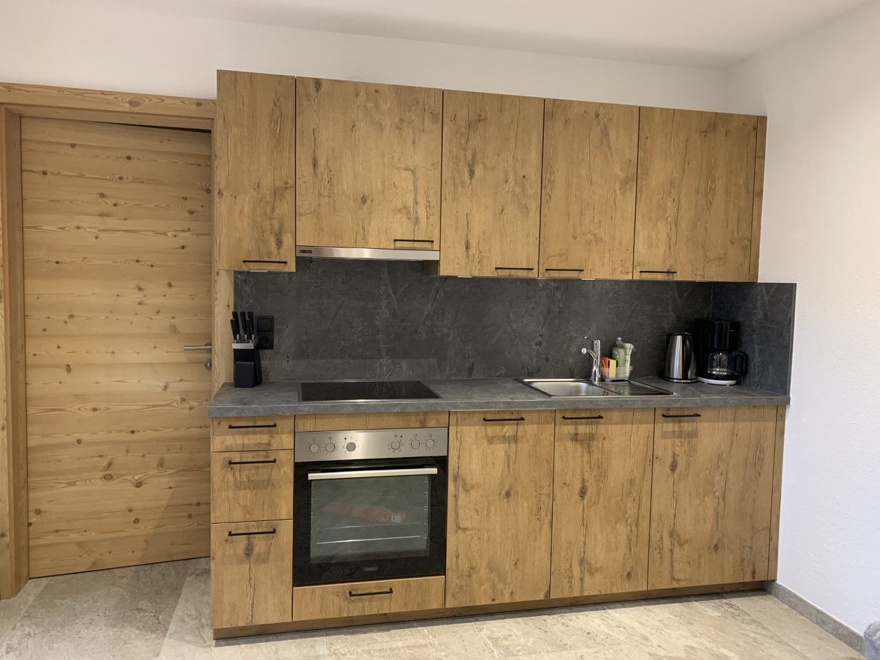> Vollausgestattete Küche mit Cerankochfeld, Kühlschrank mit Gefrierfach, Backofen, Wasserkocher, Toaster, uvm.