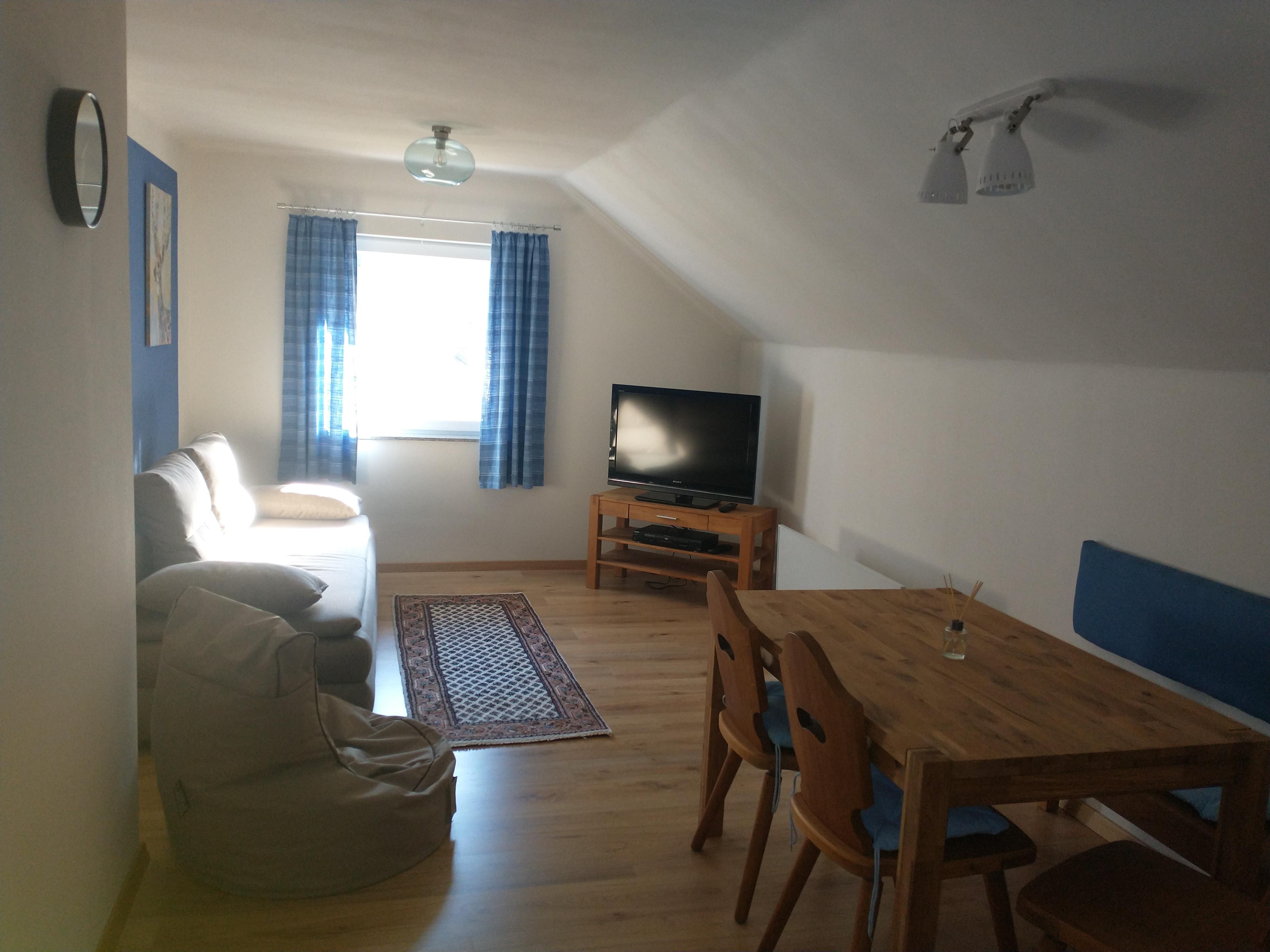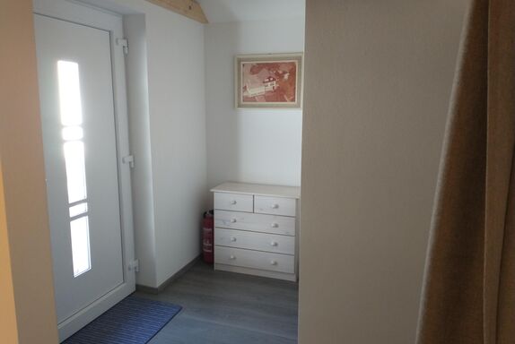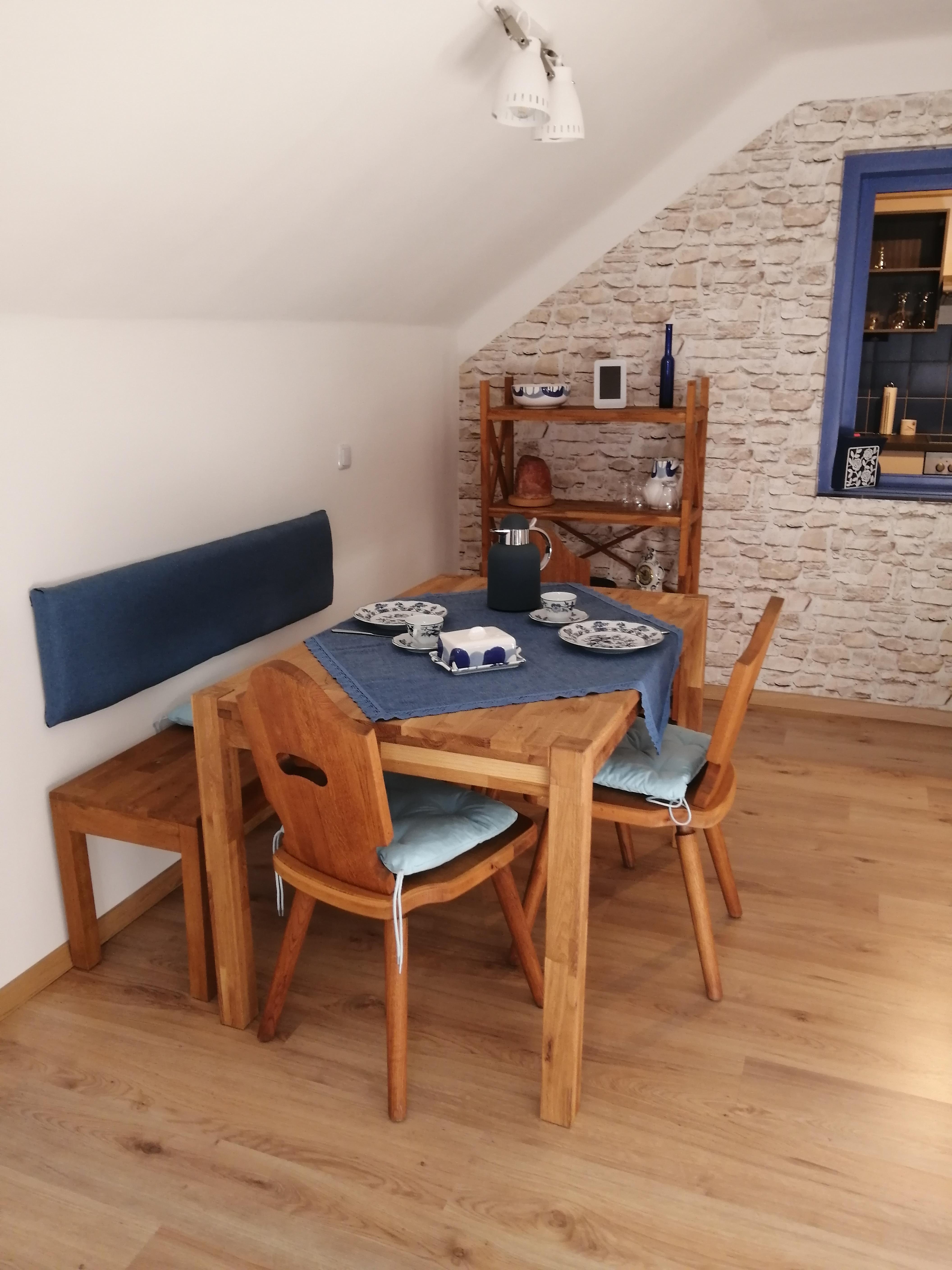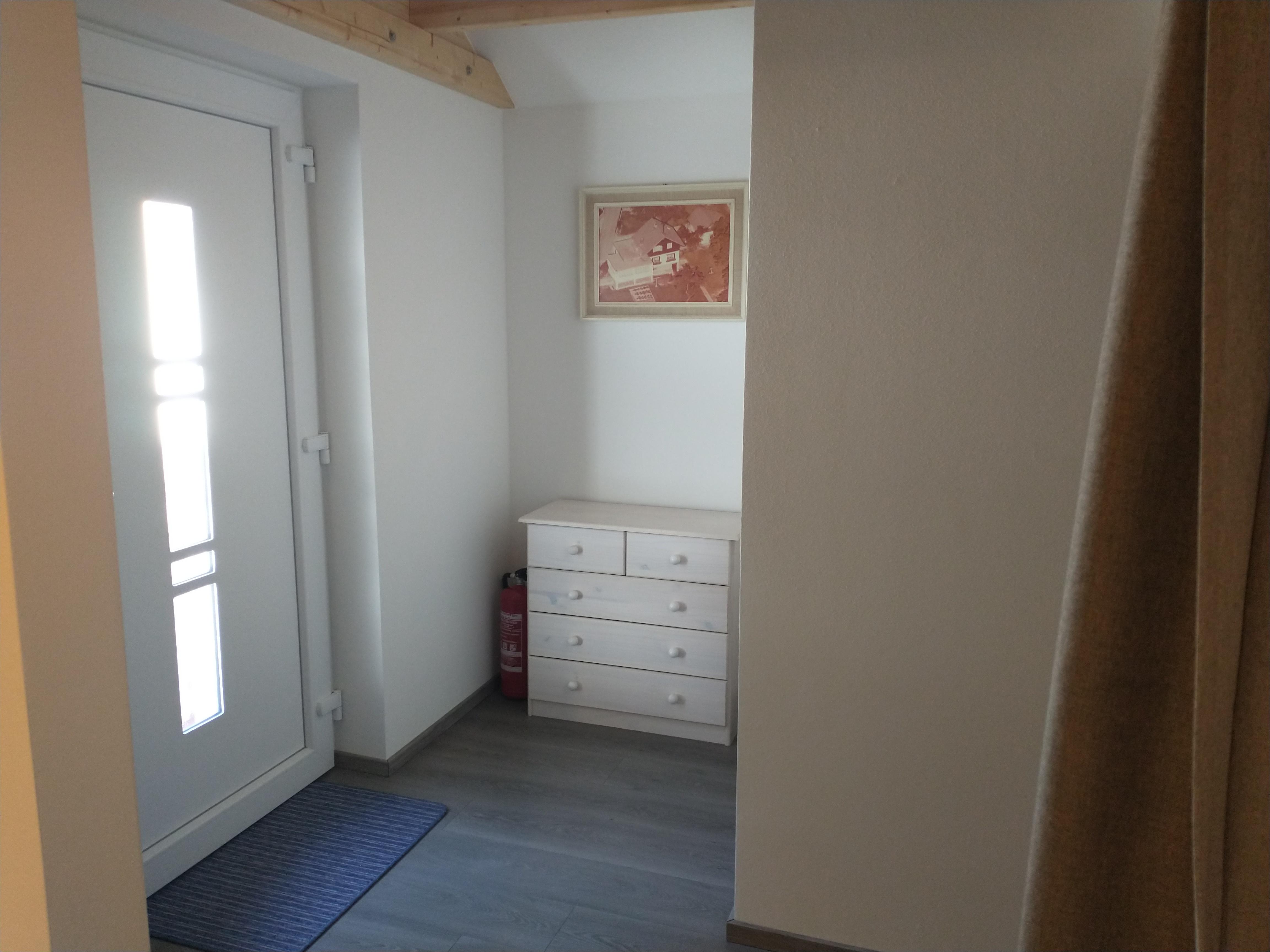 Die neu renovierte Ferienwohnung befindet sich im 1. Obergeschoß vom Haus. Der seperate Zugang führt über eine breite Treppe zur Wohnung. Der Vorraum in der Wohnung verfügt über eine kleine Garderobe, Spiegel und ausreichend Platz für Koffer und Taschen. Die Küche ist gut ausgestattet. Das Schlafzimmer hat ein Doppelbett und Kleiderschrank. Handtücher und Bettwäsche sowie WLAN wird zur Verfügung gestellt.