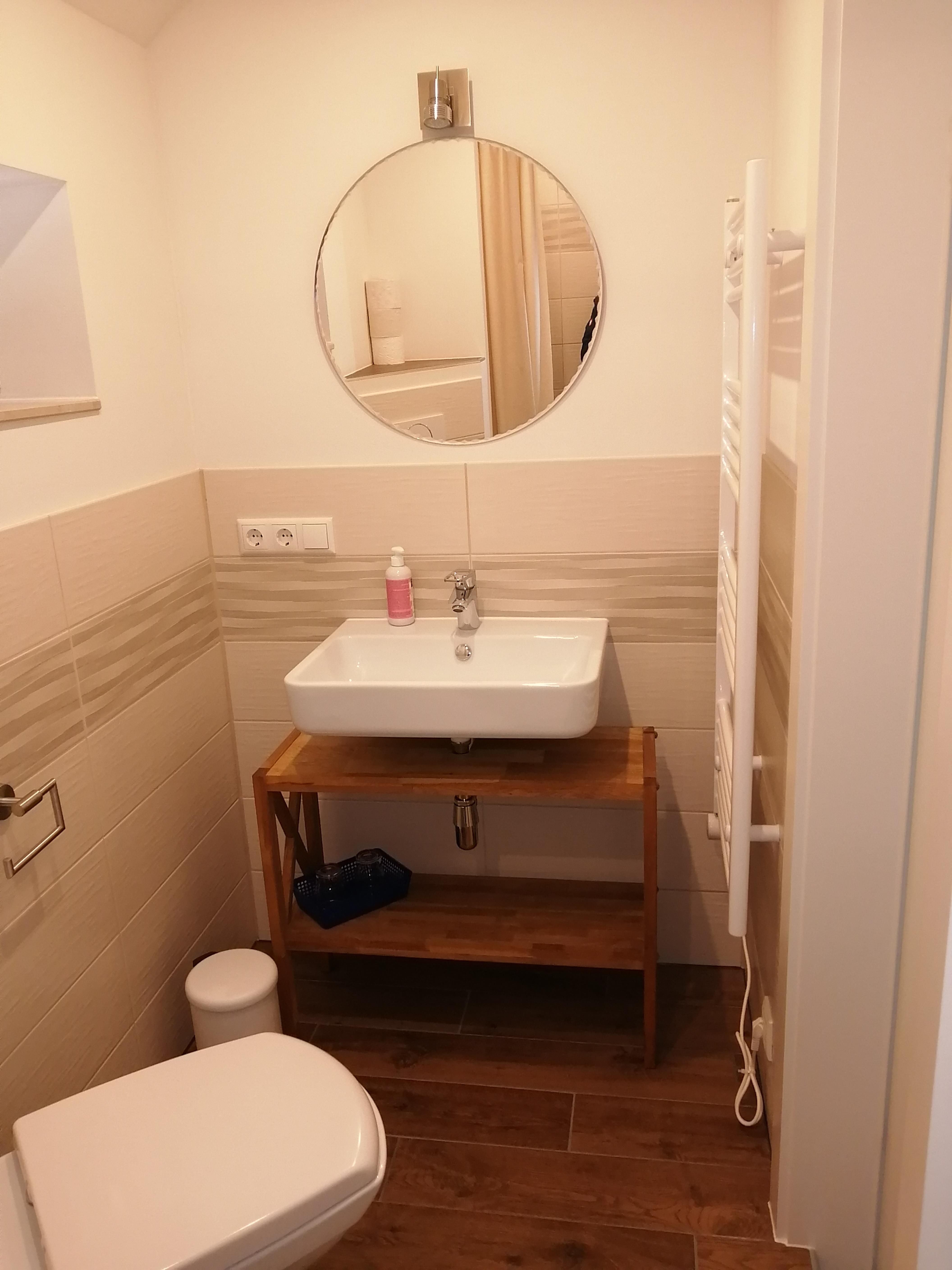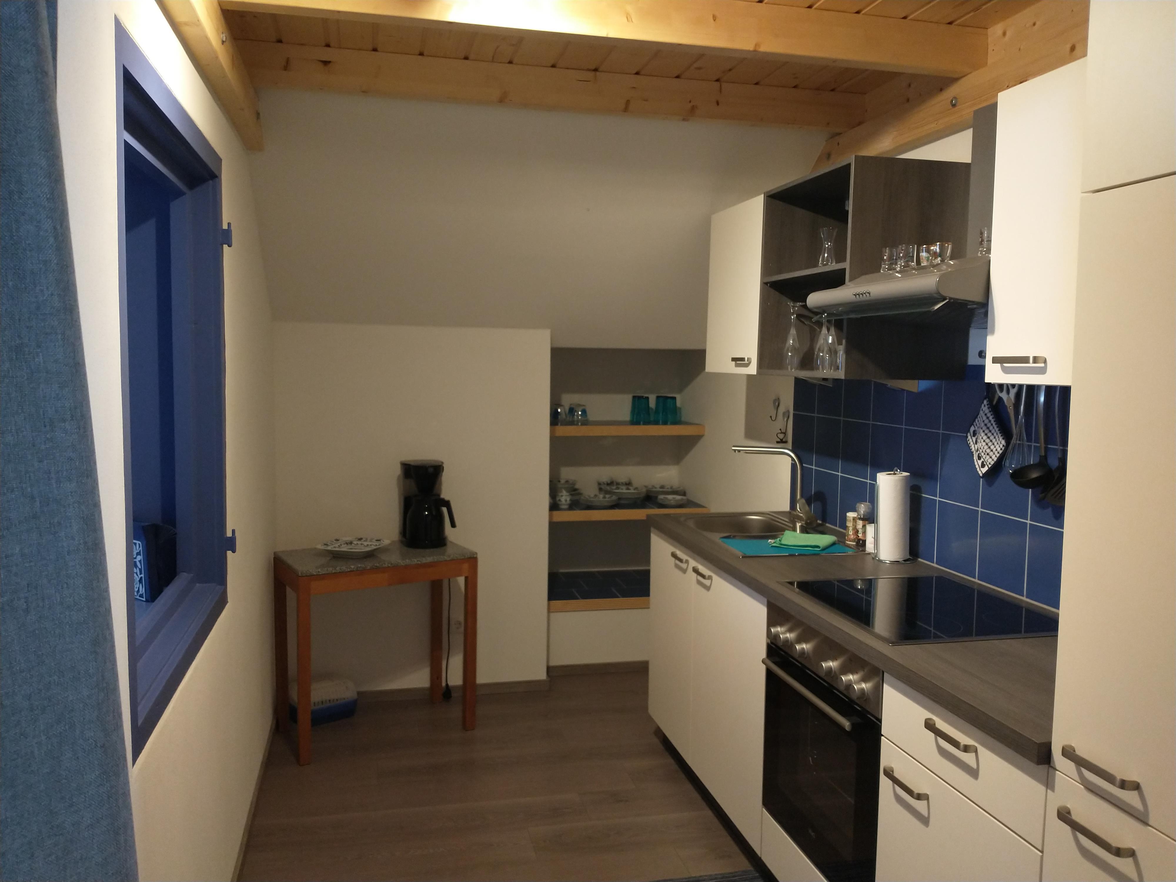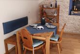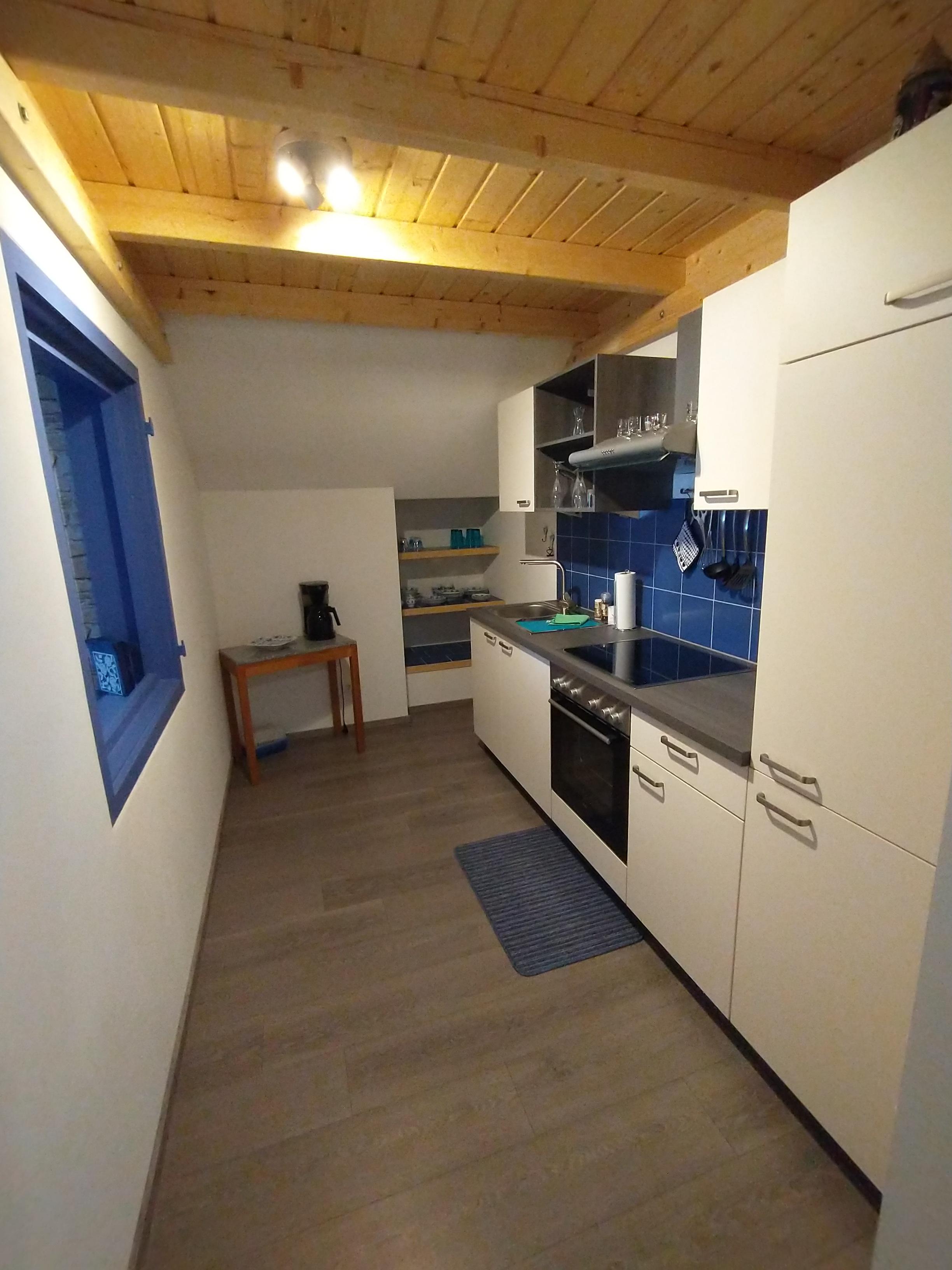Die neu renovierte Ferienwohnung befindet sich im 1. Obergeschoß vom Haus. Der seperate Zugang führt über eine breite Treppe zur Wohnung. Der Vorraum in der Wohnung verfügt über eine kleine Garderobe, Spiegel und ausreichend Platz für Koffer und Taschen. Die Küche ist gut ausgestattet. Das Schlafzimmer hat ein Doppelbett und Kleiderschrank. Handtücher und Bettwäsche sowie WLAN wird zur Verfügung gestellt.