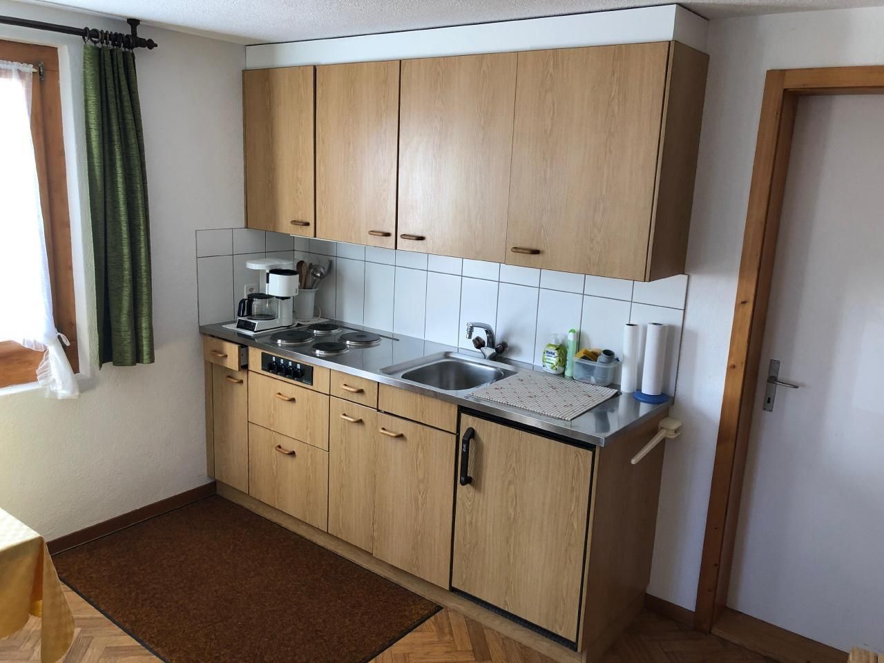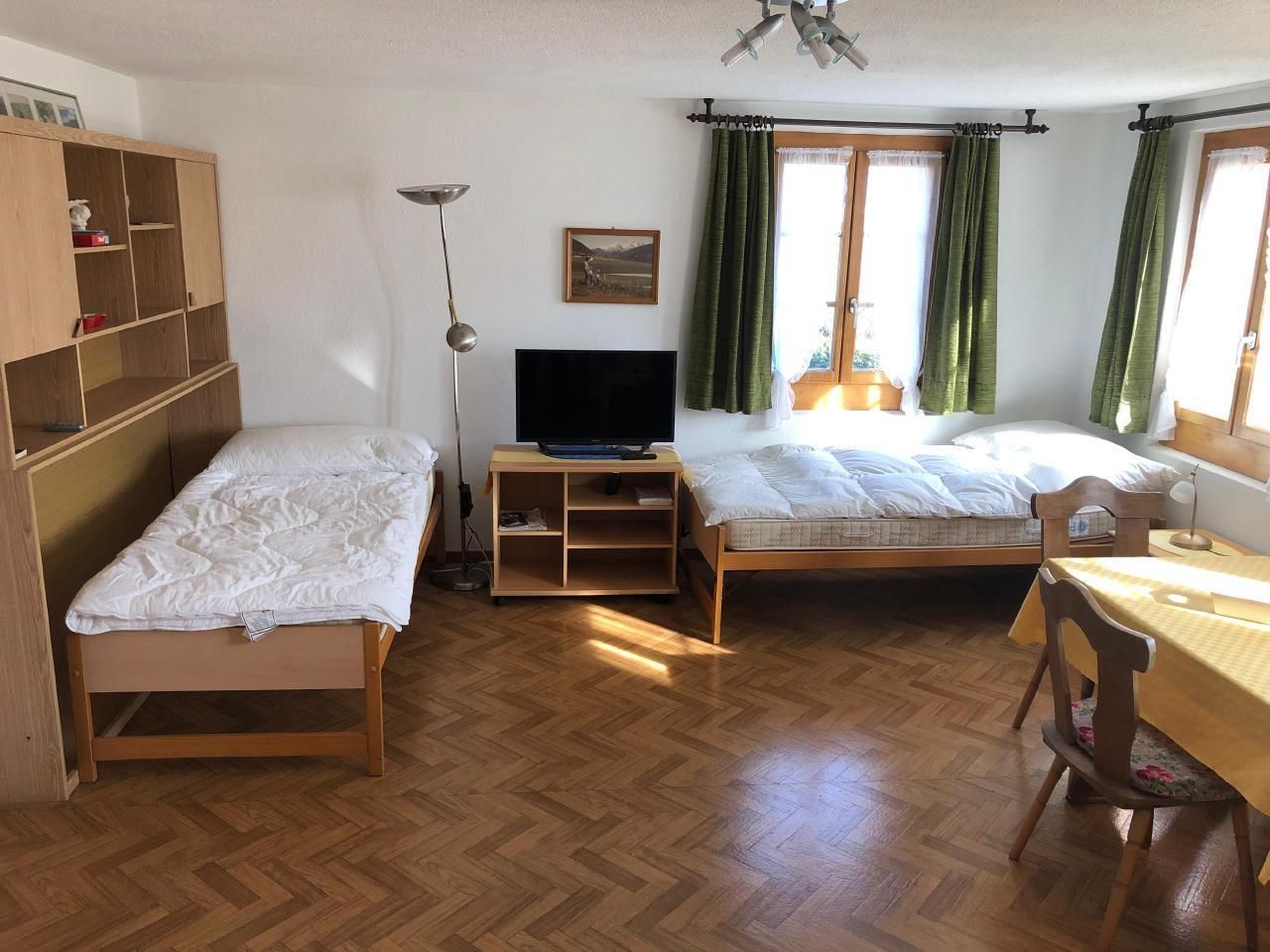 Das 1-Zimmer Studio bietet zwei Betten, (die man auch zu einem Doppelbett zusammenschieben kann) eine kleine Küche mit Herd und den nötigsten Kochutensilien. Eine Nespresso Maschine plus 10 Kapseln Kaffee Royal Lunge stehen ebenfalls zur Verfügung. Im separaten Badezimmer mit Dusche und WC ist ein Haartrockner vorhanden.